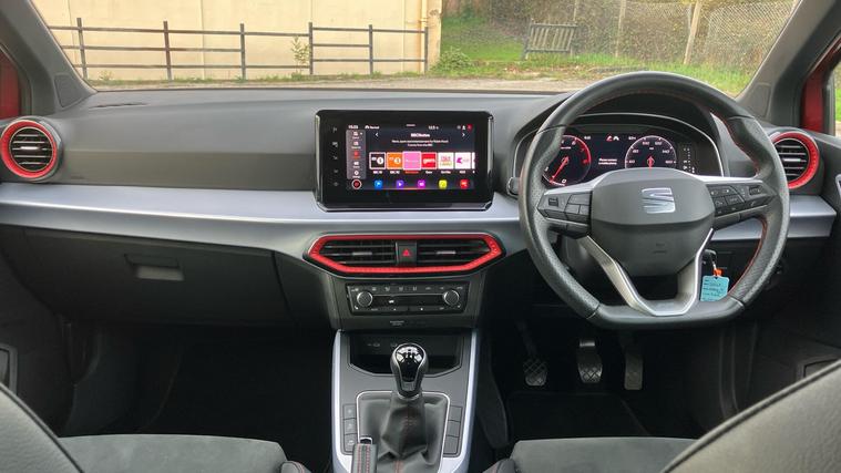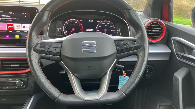 - Perforated Leather Flat-Bottomed Steering Wheel with Red Stitching and FR Logo with Leather Gear Knob and Handbrake