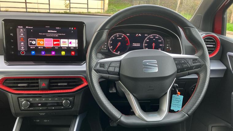 Discover this exceptional 2023 SEAT Arona TSI FR Sport, boasting remarkably low mileage for its year at just 10167 miles. This Euro 6 compliant 1.0 litre petrol model comes with a 3 month warranty for your peace of mind. The FR Sport trim ensures a stylish and well equipped experience, featuring Full Link Smartphone Integration for seamless connectivity with Android Auto and Apple CarPlay, heated front seats for comfort on colder days, and rear parking sensors to assist with manoeuvring. You'll also appreciate the convenience of a wireless phone charger and dual zone climate control, allowing both driver and passenger to set their preferred temperature.This SEAT Arona stands out with its impressive fuel economy, achieving a highlight of 51 miles per gallon, and also boasts low CO2 emissions, indicating its efficiency compared to similar vehicles. These highlights, combined with its comprehensive feature set and excellent provenance, make this Arona a compelling choice for those seeking a modern, practical, and economical compact SUV..