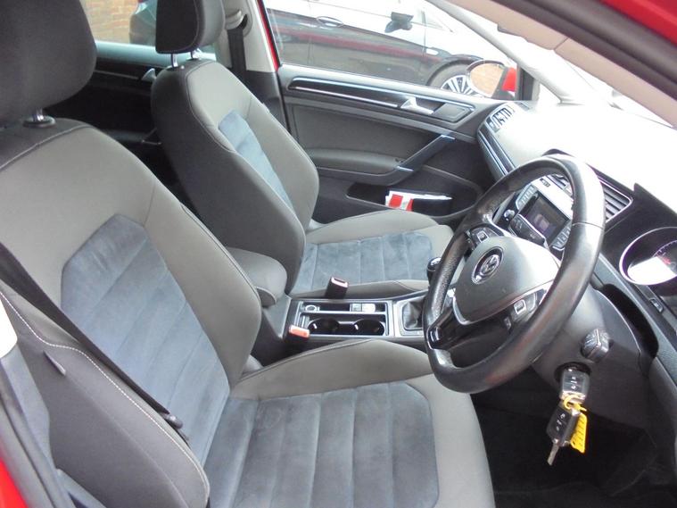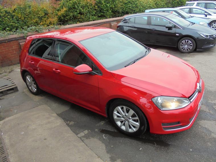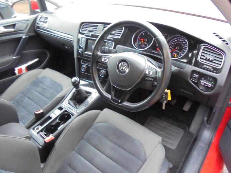 VOLKSWAGEN GOLF 2.0 TDI BLUEMOTION TECH GT 5 DOOR EURO 5.BRIGHT RED WITH CONTRASTING CHARCOAL GREY HALF ALCANTARA INTERIOR.FANTASTIC SERVICE HISTORY WITH CAMBELT AND WATERPUMP CHANGED AND MASSIVE dealer's website WITH SAT NAV, BLUETOOTH CONNECTIVITY, FRONT AND REAR PARKING SENSORS, AIRCON, CRUISE CONTROL, 16 INCH ALLOYS AND 2 KEYS.VERY ECONOMICAL GT £20 A YEAR ROAD TAX AND 60MPG.GREAT VALUE GOLF GT WITH MOT UNTIL OCTOBER 2026 AND FRESH SERVICE.12 MONTHS FREE AA BREAKDOWN COVER AND 15 MONTHS WARRANTY INCLUDED IN PRICE.FINANCE AVAILABLE P/X WELCOME..