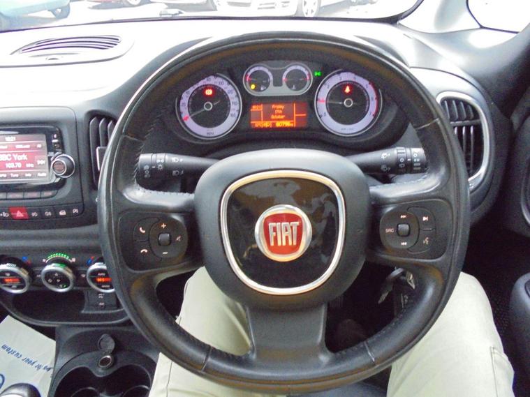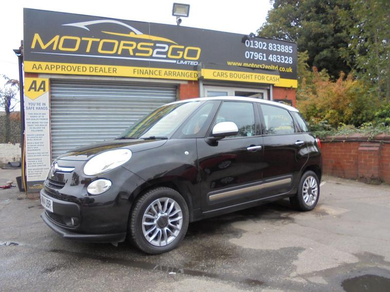 FIAT 500L MULTIJET LOUNGE 5 DOOR EURO 5.ONE PREVIOUS OWNER FROM NEW IN METALLIC BLACK WITH WHITE DECAL AND GREY AND BLACK HALF LEATHER INTERIOR. LOW MILEAGE WITH FULL SERVICE HISTORY.FANTASTIC SPEC WITH PANORAMIC ROOF, BLUETOOTH CONNECTIVITY, REAR PARKING SENSORS, CRUISE CONTROL, AIRCON, USB+AUX, DAB RADIO, 16 INCH ALLOYS AND 2 KEYS.VERY ECONOMICAL MINI SUV £35 A YEAR ROAD TAX AND 60MPG.MOY UNTIL NOVEMBER 2026 AND FRESH SERVICE.12 MONTHS FREE AA BREAKDOWN COVER AND 15 MONTHS NATIONWIDE WARRANTY INCLUDED IN PRICE.FINANCE AVAILABLE P/X WELCOME..