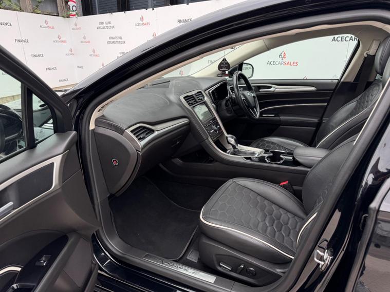 FINANCE & PCP AVAILABLE, COMPLEMENTARY WARRANTY INCLUDED, GOOD CONDITION, WE TAKE PART EXCHANGE! Ford Mondeo 2.0 TDCi Vignale Powershift Euro 6 (s/s) 4dr. HPI Clear, Full Service History, 12 Months MOT, 4 Owners, 2 Keys, EURO6 ULEZ Compliant, Fuel Consumption 58.9MPG, Electric Sliding Sunroof, Winter Pack, Massage Front Seats, Keyless Entry, Keyless Start, Adaptive Cruise Control with Collision Mitigation, Speed Limiter Function, Lane Keeping Aid With Driver Alert, Parking Assist, Reverse Camera, Parking Sensors, Blind Spot Monitoring, Traffic Sign Recognition, Power Steering, Paddle Shifts, Sports Gearbox Mode, Hill Launch Assist, Electric Parking Brake, Start/Stop Function, Traction Control, Electronic Brakeforce Distribution, Electronic Stability Programme, Emergency Brake Assist, Anti-Lock Braking System, Tyre Pressure Monitoring System, Automatic Headlights with Auto High-Low Beam, LED Daytime Running Lights, Ford LED Adaptive Headlamps, Rear Lights - LED, Ambient Interior Lighting - Switchable Colours, Rain Sensing Front Windscreen Wipers, Electric Windows, Electric Mirrors, Powerfolding Mirrors, Electric Front Seats With Drivers Memory Seat, Heated Steering Wheel, Cooling/Heated Front Seats, Automatic Dual Zone Climate Control, Air Conditioning, Front Heated Screen, Rear Screen Demister, Colour Touch Screen Interface, Navigation, Traffic Information, Virtual Style Drivers Information Display, Bluetooth, Radio, DAB, AUX, USB, CD, Telephone Connection, Voice Control, Multifunctional Steering Wheel, Honeycombe Design Leather Seats With White Stitching, Aluminium Design Interior Trims, Vignale Design Door Sills, Exterior Design Badging, Aluminium Exterior Design, Privacy Glass, 19inch Alloy Wheels.ALL VEHICLES ARE FULLY INSPECTED PRIOR TO SALE. Feel free to enquire about our competitive Financial packages. We can assist you in securing finance for your New car with ease- regardless of your credit status/history. We include a COMPLEMENTARY WARRANTY on all our vehicles. Be our next happy customer today! dealer's website