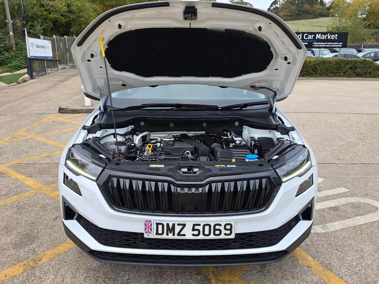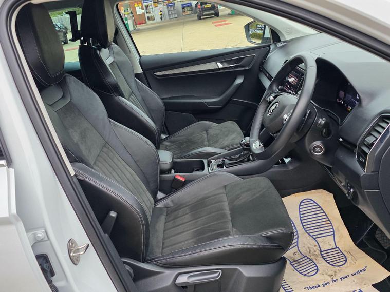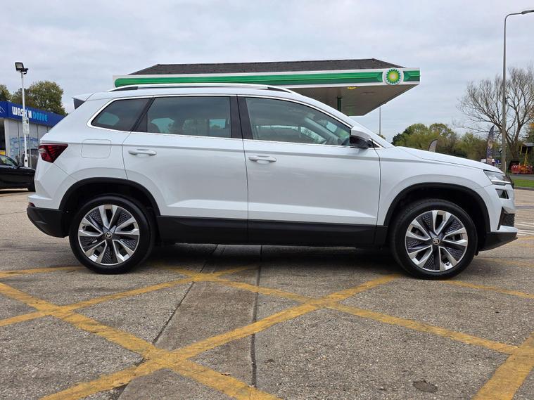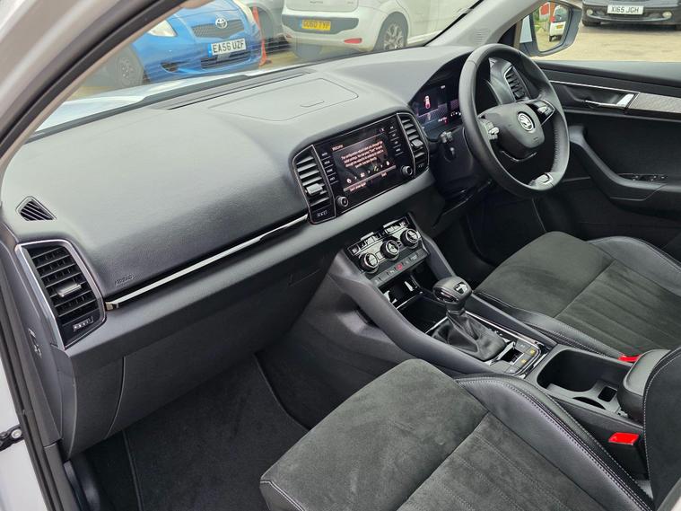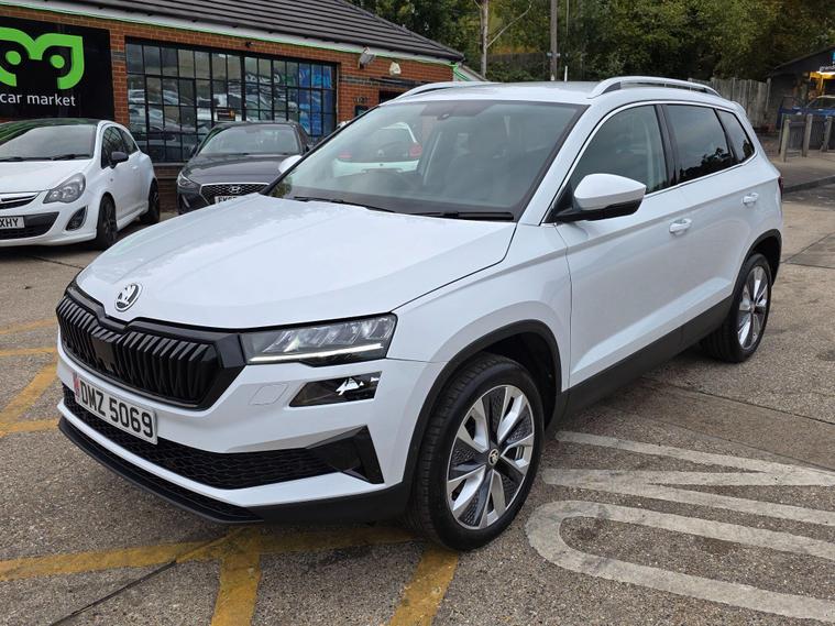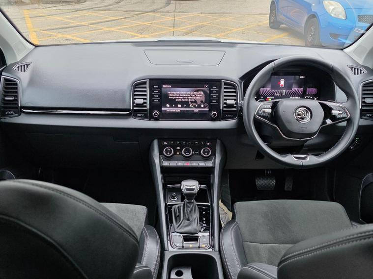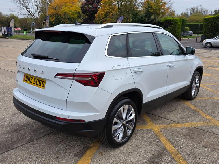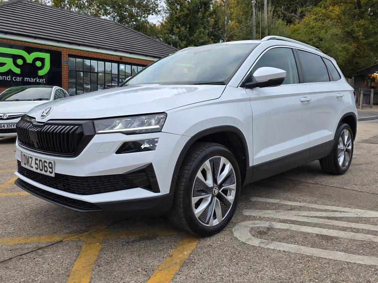 This 2024 Skoda Karoq TSI SE L is a superb example, having had only one owner from new. This stylish SUV is equipped with a responsive 1.5 litre petrol engine, meeting Euro 6 emissions standards. Inside, you'll find a comfortable and practical cabin featuring dual zone climate control and a heated multi-function steering wheel with DSG paddles. The SE L trim also benefits from LED headlights, a light and rain sensor package with an auto dimming rear view mirror, and SmartLink technology for seamless integration with your smartphone, including Android Auto and Apple CarPlay.Experience impressive efficiency with a fuel economy of up to 46 miles per gallon, alongside low CO2 emissions, making this Karoq an economical choice. Its acceleration is brisk, reaching 0 to 60 miles per hour in just 8.7 seconds, demonstrating its capable performance. Furthermore, the Karoq boasts a generous boot space, offering ample room for all your luggage and shopping needs. These highlights collectively indicate that this Skoda Karoq offers a superior driving experience and practicality compared to many other vehicles in its class..