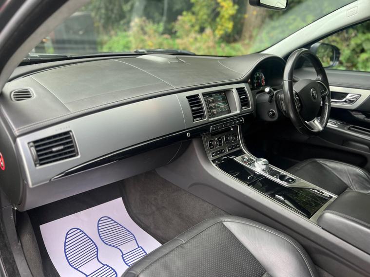 This 2014 Jaguar XF d S V6 Portfolio offers a compelling blend of performance and luxury. As a Portfolio trim, this model boasts a powerful 3.0 litre diesel engine, delivering an impressive 0-60mph time of just 6.1 seconds. Inside, you'll find a host of desirable features designed for comfort and convenience, including Bluetooth connectivity for seamless audio streaming and handsfree calls, and dual zone automatic climate control to ensure everyone enjoys the perfect temperature. Navigating tight spaces is made easier with the rear parking aid, complete with a helpful touch screen visual indicator.The exterior of this Jaguar XF is equally well equipped, featuring striking Xenon headlights for superior illumination and distinctive LED signature lights with daytime running functionality, enhancing both visibility and style. These features, combined with the potent 3.0L diesel engine and the refined Portfolio trim, position this Jaguar XF as a standout choice in its class, offering a superior driving experience compared to other vehicles..