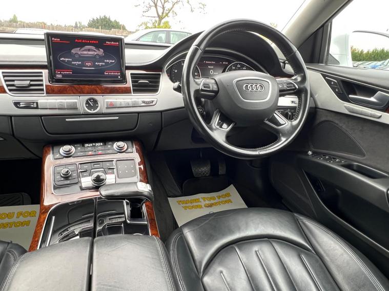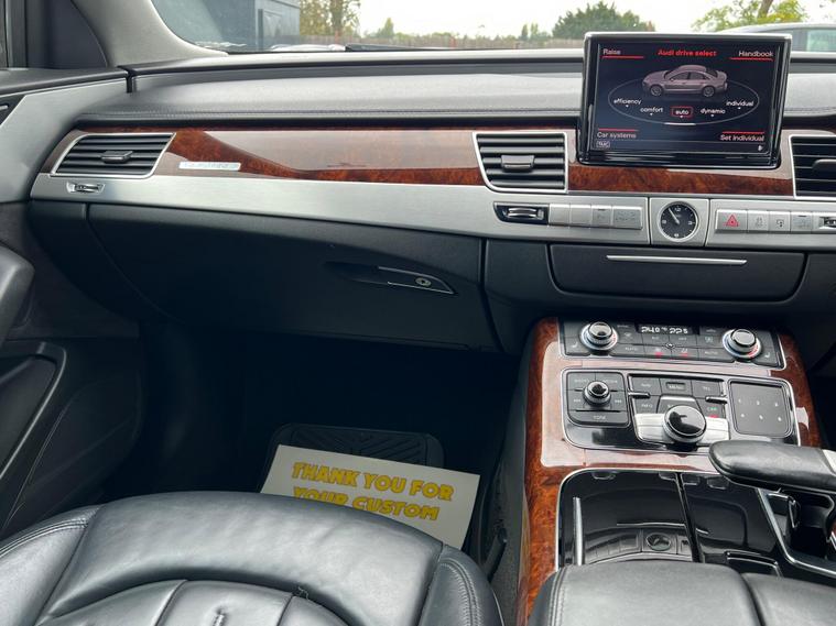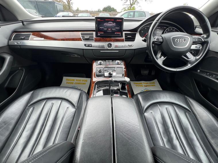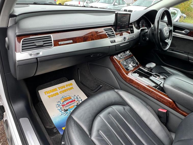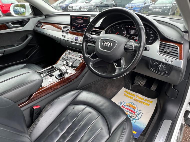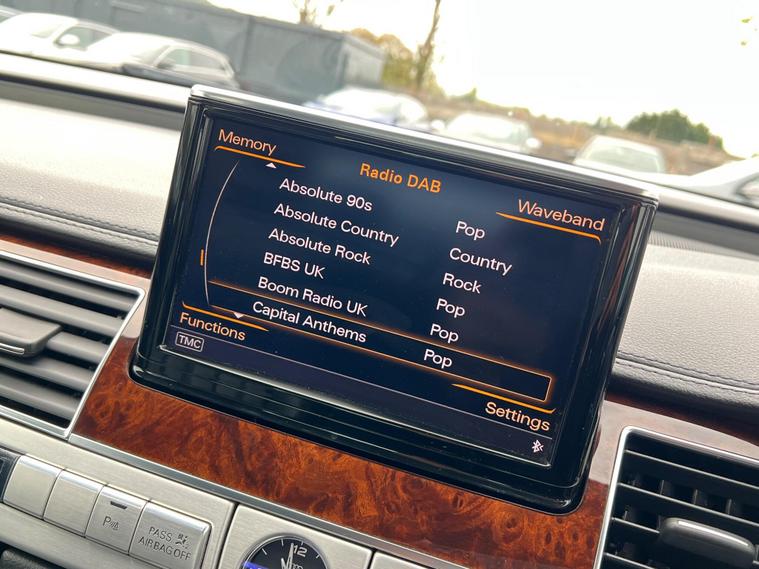 This 2012 Audi A8 TDI V6 SE Executive offers a compelling blend of performance and refinement. As a four wheel drive model, it features a powerful 3.0 litre diesel engine, ensuring a smooth and capable drive. The SE Executive trim level enhances the experience with desirable features such as heated front seats for added comfort, Bi-Xenon Plus headlights for superior visibility, and front and rear parking sensors, including parking assistance, to make manoeuvring effortless. Furthermore, the integrated Bluetooth interface provides seamless mobile telephone connectivity, keeping you in touch on the go.This Audi A8 stands out with its impressive acceleration, reaching 0-62mph in just 6.1 seconds, demonstrating its dynamic capabilities. Its generous boot space offers ample room for luggage or shopping, making it a practical choice for everyday use and longer journeys. The A8 also benefits from a low insurance group, which can contribute to lower running costs. These highlights collectively indicate that this A8 offers a superior ownership proposition compared to many other vehicles in its class..