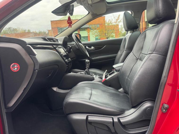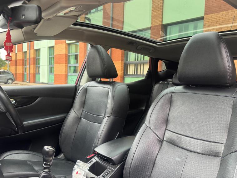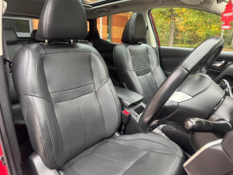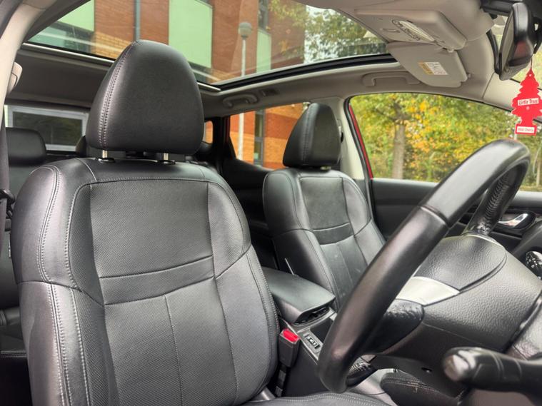 This Nissan not only comes with FULL SERVICE HISTORY but also consists of convenient yet stylish specs. This vehicle includes FRONT AND REAR PARKING SENSORS, LEATHER INTERIOR TRIM, HEATED SEATS, BLACK PACK, SUN ROOF, DUAL AC STSTEM, REVERSE CAMERA, ALLOY WHEELS, 6 SPEAKERS, SPLIT REAR FOLDING SEATS, AUX-IN SOCKET, ALARM, ARMREST REAR, AUTO DIMMING REAR VIEW MIRROR, BODY COLOURED HANDLES, BLIND SPOT WARNING, CHROME GLASS SURROUND, CLIMATE CONTROL, CRUISE CONTROL WITH SPEED LIMITER, DAB RADIO, EBD, ESP, FRONT COLLISION AVOIDANCE, FRONT FOG LIGHTS, HEAD RESTRAINTS, INTELLIGENT KEY, LEATHER GEAR KNOB, LANE DEPARTURE WARNING, PANORAMIC GLASS ROOF, PARKING SENSOR, POLLEN FILTER, MOVING OBJECT DETECTION, REAR PRIVACY GLASS, ROOF RAILS, SERVICE INDICATOR, NISSAN CONNECT, SERVICE INDICATOR, SMART VISION PACK, SPEED-SENSITIVE AUTOLOCK FUNCTION, TPMS, BLUETOOTH, TRACTION CONTROL, TRAFFIC SIGN RECOGNITION, USB PORT, ELECTRIC PARKING BRAKE and many more.* All our vehicles come with 12 months MOT and are HPI CLEAR. We provide 3 months engine and gearbox warranty with all vehicles however there can be an extended warranty for an additional fee. We are open 7 days a week from Mon-sun from the hours of 9am - 7pm. Please get in touch with us to book your viewing prior to arrival to prevent any delays from both our staff and yourselves. If there are any questions please do not hesitate to get in touch with a member of the team*.
