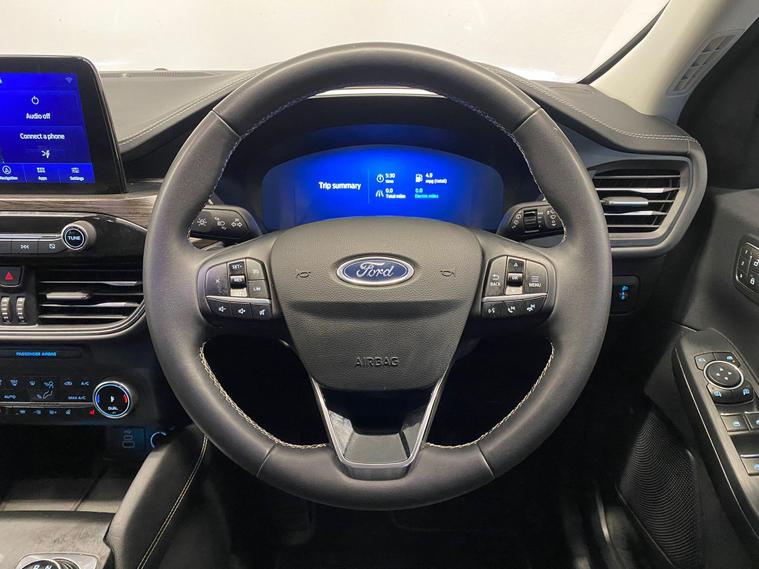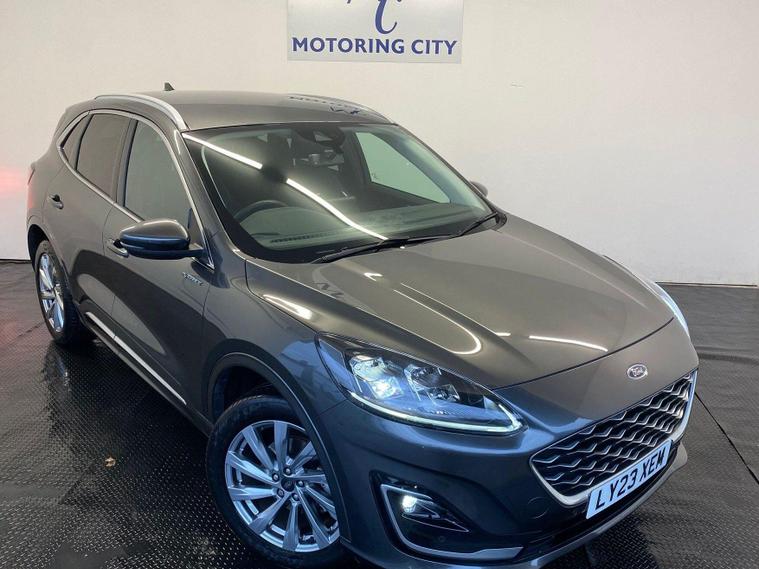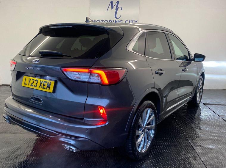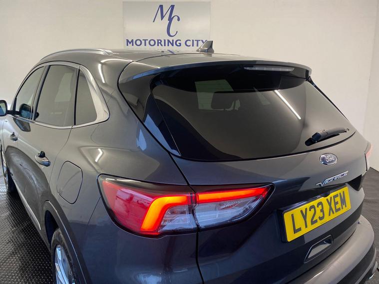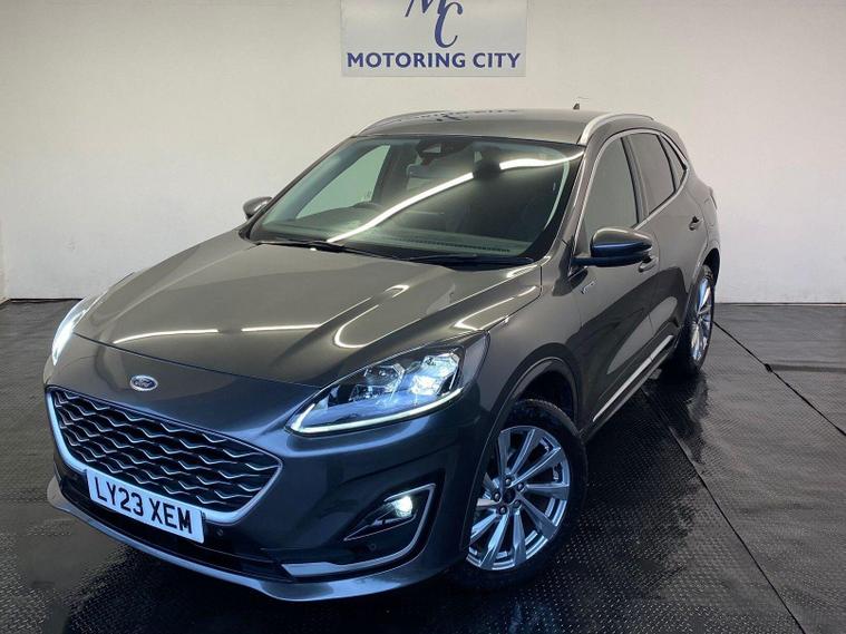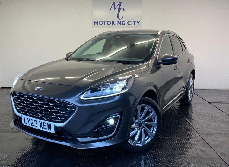 ULEZ COMPLIANT|PETROL HYBRID| AUTOMATIC |VIGNALE | KEYLESS ENTRY | PARKING SENSORS |REVERSE CAMERA | ELECTRIC TAILGATE | ELECTRIC DRIVER SEAT ADJUSTMENT | DRIVER MEMORY SEAT | ELECTRIC MIRRORS | REAR PASSANGER HEATED SEATS | CRUISE CONTROL | SPEED LIMITER | VOICE COMMAND | AUTO HEADLIGHTS | USB | TYPE C | 12V | HEATED DRIVER & PASSANGER SEAT | AC | HEATED STEERING | RADIO FM, AM| BLUETOOTH | NAVIGATION | APPLE CAR PLAY | ANDROID AUTO | WIFI | HPI CLEAR |FREE AA BREAKDOWN COVER WITH ALL PURCHASES|FINANCE & WARRANTY AVAILABLE|DELIVERY AVAILABLE NATIONWIDE | £99 ADMIN FEEThis 2023 Ford Kuga Vignale offers an exceptional ownership experience, having been driven by only one owner and boasting a remarkably low mileage of just 12, 600 miles. As a 2.5 litre petrol hybrid, this Euro 6 compliant model combines efficiency with a smooth driving experience. The Vignale trim level ensures a premium feel, enhanced by features such as a rear view camera with parking assistance, and the Ford SYNC3 DAB navigation system which seamlessly integrates Android Auto and Apple CarPlay, all delivered through a premium branded sound system. You'll also appreciate the convenience of automatic headlights, including follow me home and auto high-low beam functions, and the comfort of heated rear seats. This Kuga Vignale stands out with its impressive fuel economy of 51 miles per gallon, a figure that highlights its efficiency compared to many other vehicles. Its low CO2 emissions further contribute to its environmentally conscious profile. The acceleration from 0 to 62 miles per hour in just 9.1 seconds demonstrates a responsive performance. Furthermore, its placement in a low insurance group makes it an attractive and cost effective choice for many drivers, indicating it offers better value than similar models on the market..