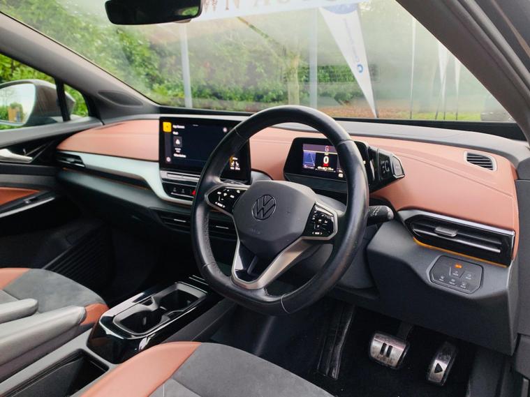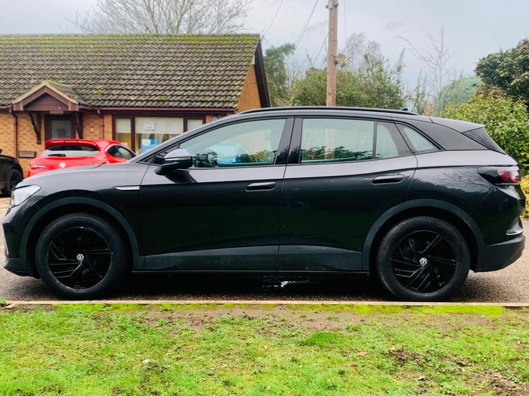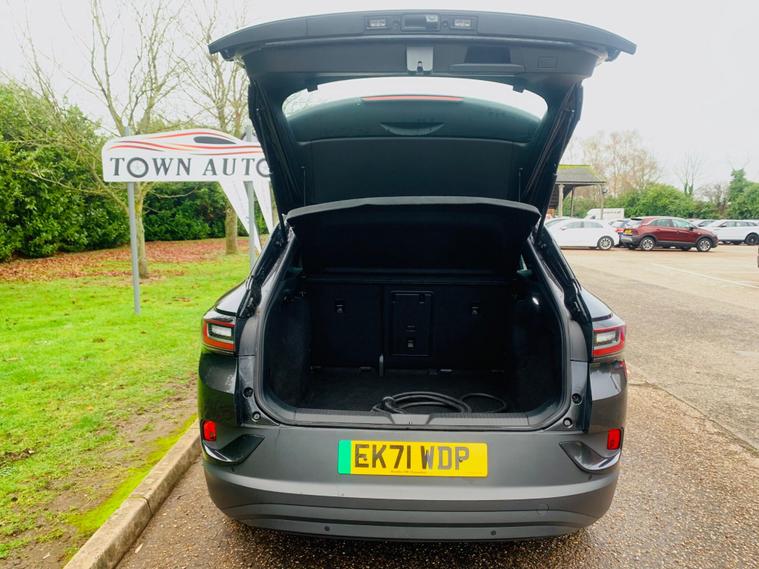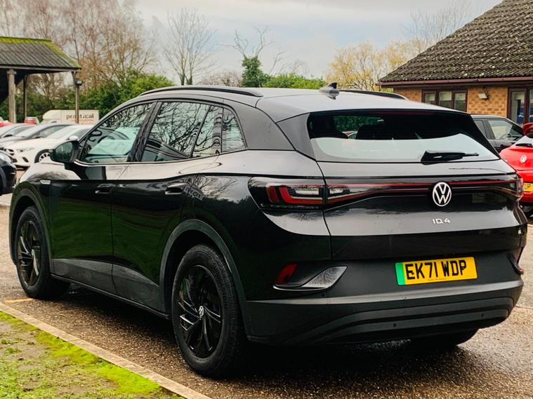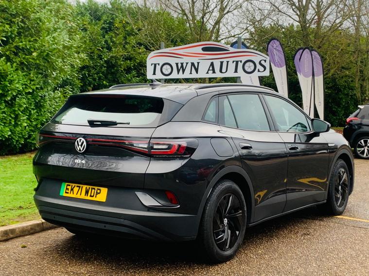 MOT 02/06/2026, MOT ADVISORY FIXED, SPARE KEY, This 2021 Volkswagen ID.4 Pure Life is a fantastic example with a clear vehicle history. As an electric vehicle, it offers a smooth and quiet driving experience. This model features a 55 kWh battery, providing a maximum range of 213 miles when new. Charging is convenient, with a full charge at home taking approximately 7 hours and 30 minutes using a 7kW charger, and a rapid charge to 80% achievable in just 38 minutes at a public charging station. The ID.4 Pure Life comes equipped with a range of impressive features designed for comfort and convenience. These include LED headlights with automatic switching and LED tail lights, adaptive cruise control, front and rear parking sensors, and a rear parking camera, all contributing to a safer and more relaxed drive. The Climatronic air conditioning system with stand air conditioning allows for pre conditioning of the cabin, ensuring a pleasant temperature before you even set off. Furthermore, Bluetooth connectivity for telephone and audio ensures you can stay connected on the go. The generous boot space is another highlight, offering ample room for luggage or shopping, making this ID.4 a practical choice for everyday use and longer journeys..