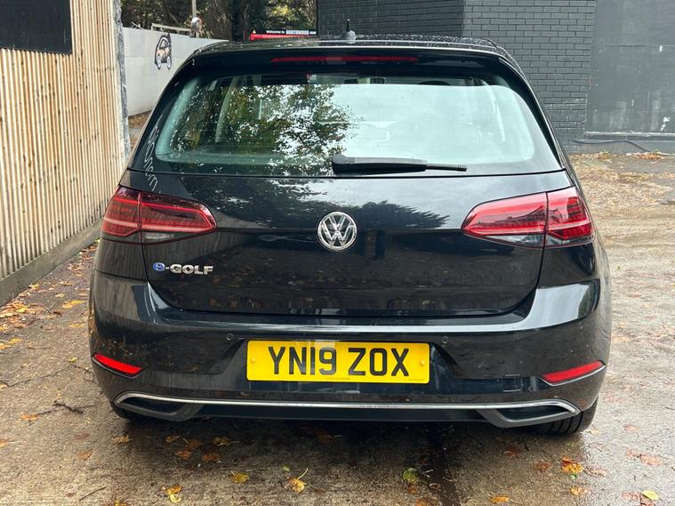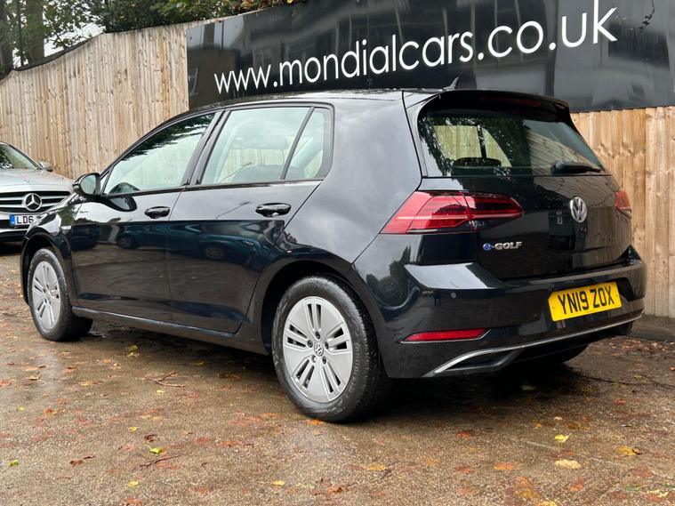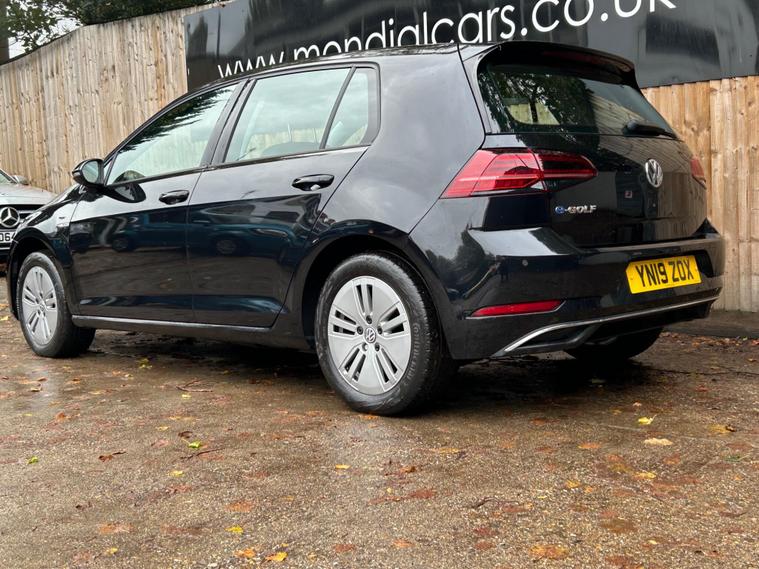 Discover this 2019 Volkswagen e-Golf, a superb electric hatchback offering a blend of efficiency and modern technology. This particular model boasts a 36 kWh battery, providing a maximum range of 144 miles when new, making it ideal for both daily commutes and longer journeys. Charging is convenient, with a full charge at home taking approximately 5 hours and 20 minutes using a 7kW charger, while rapid public charging can replenish the battery from empty to 80% in just 40 minutes.The e-Golf comes equipped with a suite of impressive features designed to enhance your driving experience. Navigate with ease using the Discover Navigation Pro Touch-Screen system, complete with DVD radio and integrated voice activation, plus Car-Net Guide and Inform Plus. Enjoy superior visibility with LED headlights and maintain a comfortable distance from other vehicles thanks to Adaptive Cruise Control. The car also features automatic climate control and a Convenience Pack, which includes automatic headlights. Furthermore, this e-Golf offers generous boot space, providing ample room for your shopping or luggage, setting it apart from many other vehicles in its class..