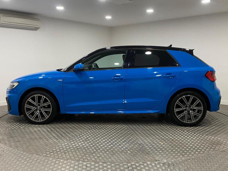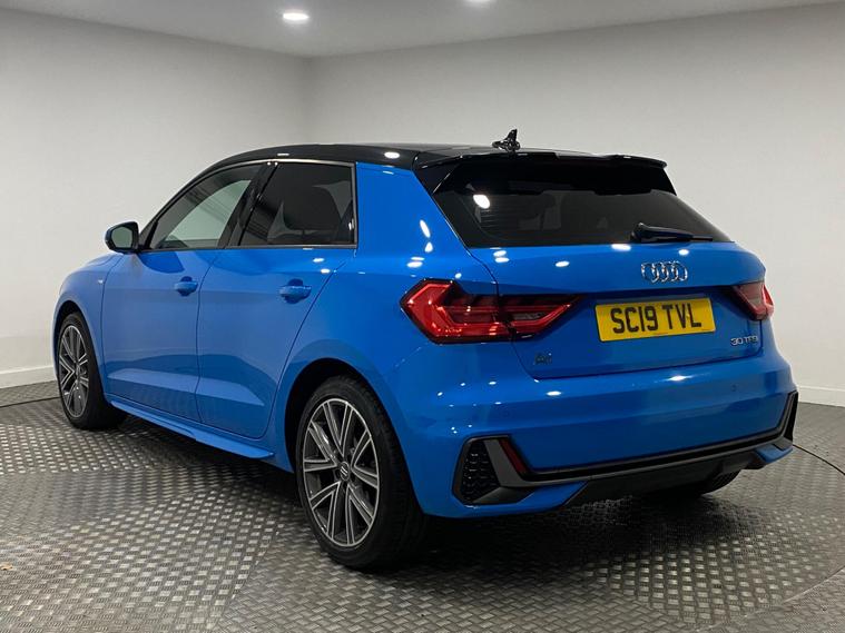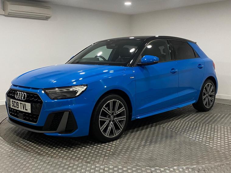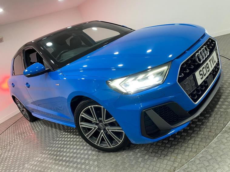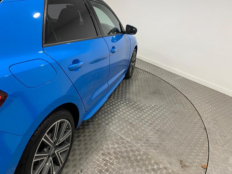 This 2019 Audi A1 TFSI S line boasts an impressive service history, serviced twice through an Audi main dealer and then once by ourselves, supplied with 2 keys and will have an MOT as part of our internal preparation. Finished in turbo blue with a contrasting black roof and black part leather interior. This Euro 6 compliant model features a responsive 1.0 litre petrol engine and is presented in the sought after S line trim. Notable features include automatic headlights with a light and rain sensor, air conditioning for a comfortable cabin environment, and rear parking sensors to aid manoeuvrability. The exterior is enhanced by striking LED headlights and dynamic LED rear indicators, while the Bluetooth interface ensures seamless connectivity on the go.The Audi A1 TFSI S line offers a compelling blend of performance and practicality. Its acceleration from 0-62mph in just 9.4 seconds demonstrates its agile nature, making it a lively drive. This model also stands out with its low CO2 emissions, indicating a more environmentally conscious choice compared to similar vehicles. Furthermore, the generous boot space provides ample room for luggage or shopping, adding to its everyday usability..
