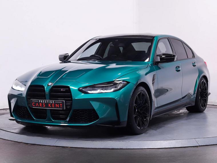 ⭐ BMW M3 3.0 BiTurbo Competition Saloon 4dr Petrol Steptronic M xDrive Euro 6 (510 ps) ⭐The BMW M3 Competition is the ultimate expression of performance, precision, and luxury. With a full BMW service history, this 510 ps powerhouse delivers exhilarating acceleration, razor-sharp handling, and refined comfort in equal measure. Blending cutting-edge technology with M-specific styling, it’s built for those who demand both excitement and sophistication behind the wheel.✨ Features We Love:✨ Carbon Ceramic Brakes ? Ambient LightingCustomisable interior illumination enhances the cabin’s sporty yet luxurious atmosphere.? Condition Based ServiceSmart maintenance system monitors performance and alerts you when service is needed.? Driving AssistantAdvanced safety aids monitor your surroundings to help prevent potential collisions.? Harman Kardon Surround Audio Sound SystemPremium speakers deliver rich, immersive sound quality throughout the cabin.?️ Head-Up DisplayProjects essential driving data onto the windscreen for distraction-free awareness.?️ Parking AssistantAutomatically steers the car into parking spaces with precision and ease.? Heated Seats – FrontProvides maximum comfort and warmth, perfect for colder driving conditions.? High-Beam AssistantAutomatically adjusts your headlights for optimal visibility without dazzling others.? Enhanced Bluetooth and Wireless ChargingStay connected and fully powered with seamless smartphone integration.☎️ 01689242905? Submit an enquiry to discuss over email.At Prestige Cars Kent, benefit from a 90-day guarantee, nationwide delivery, and a 175-point quality check, ensuring every vehicle meets the highest standards of performance and reliability.⭐ Admin fee applies. Please confirm all specifications, as they are autogenerated. ⭐.