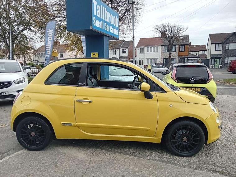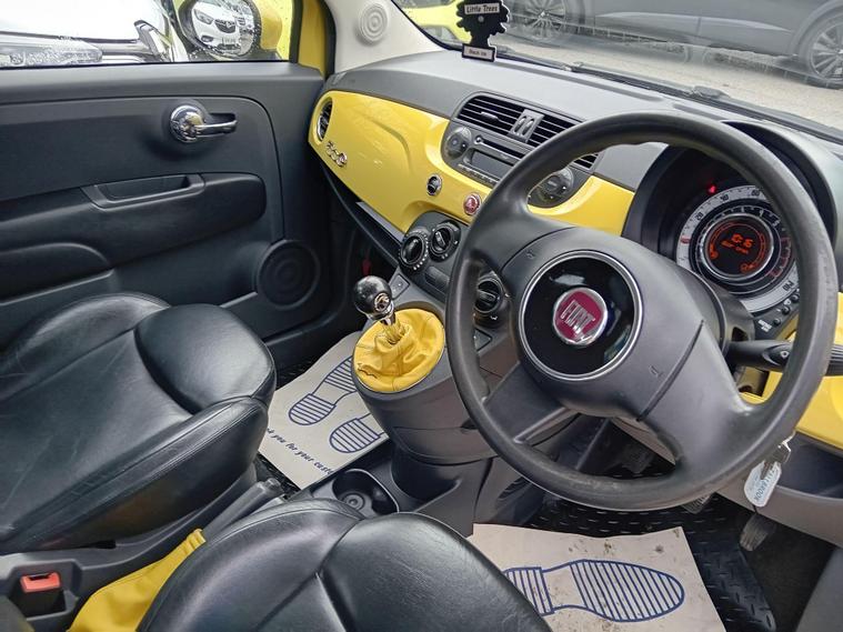 Nice low mileage Fiat 500 convertible, rare with black leather seats , yellow accents on the interior...Recent mot and service including new ront brake discs 30 days warranty covering the engine and gearbox.