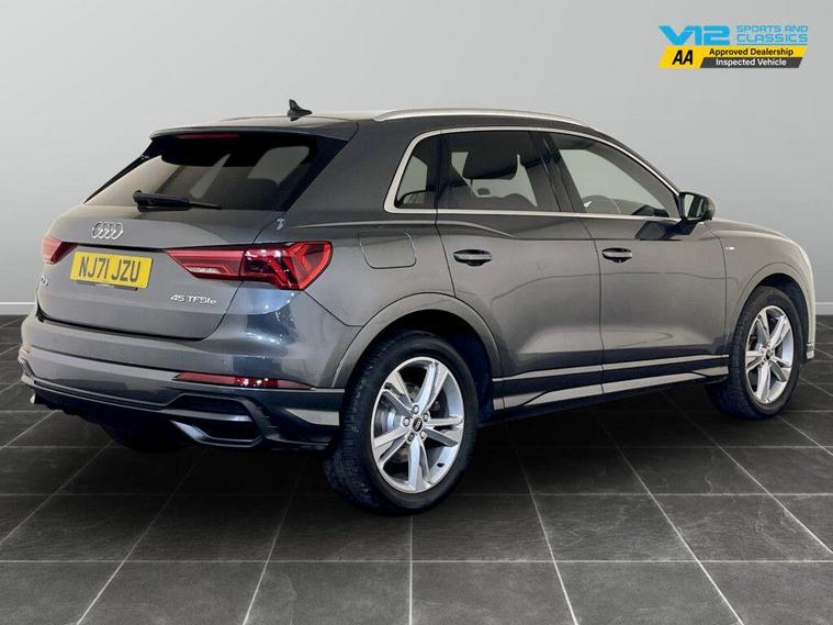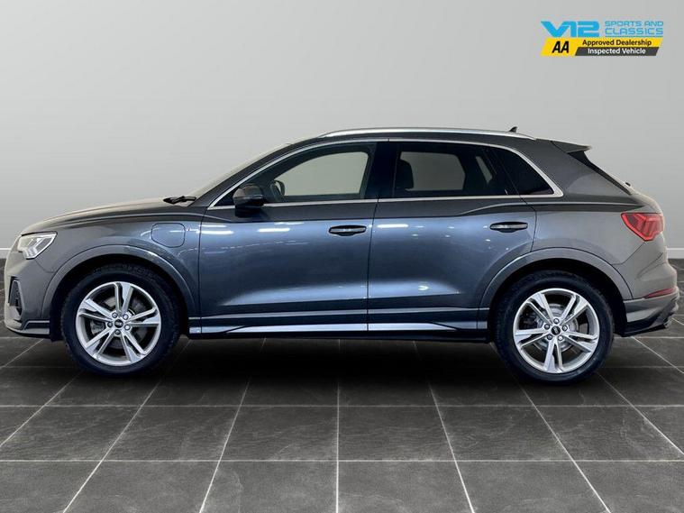 This 2021 Audi Q3 TFSIe S line is a superb example, having been cherished by only one owner since new. It boasts a sophisticated 1.4 litre petrol plug in hybrid engine, meeting Euro 6 emissions standards. For your convenience and safety, this Q3 comes equipped with rear parking sensors, including a helpful parking assistance system. Illuminating your way are LED headlights paired with distinctive LED daytime running lights, and the light and rain sensor ensures automatic headlight activation. Stay connected and comfortable with the integrated Bluetooth interface and dual zone electronic climate control. The S line trim level signifies a sportier and more refined experience, setting this Q3 apart from other models. The combination of its plug in hybrid technology offers an efficient driving experience, while the advanced lighting and parking aids provide added peace of mind. This Audi Q3 TFSIe S line presents a compelling package of technology, comfort, and practicality for any discerning driver. For peace of mind this vehicle has only had 1 registered owner and has completed a multi point AA dealer's website finance is also available.We are open 7 days a week and have more than 1500 cars to choose from.All our Euro 4 Petrol and Euro 6 Diesel vehicles meet the ULEZ standard.Vehicle specification can be found below. From time to time vehicles have manufacturer recalls notified. Please read our recall policy on our website for further information..