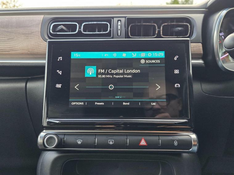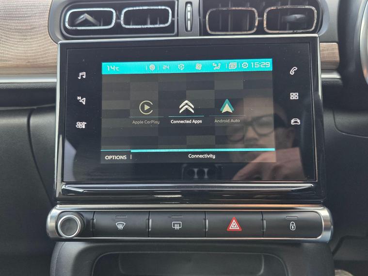 This 2022 Citroen C3 Shine Plus presents an exceptional opportunity with its remarkably low mileage of just 16, 182 miles. This Euro 6 compliant 1.2L petrol model boasts a full service history, with its last service completed on 14 April 2025 at 14, 831 miles. The vehicle has a clear history check and benefits from an MOT valid until October 2026, alongside a 6 month warranty for your peace of mind.The Shine Plus trim level comes equipped with a host of desirable features designed to enhance your driving experience. These include rear parking sensors for effortless manoeuvring, a Visibility Pack with automatic headlights, and a Technology Pack offering seamless integration with Android Auto and Apple CarPlay via Bluetooth. The Citroen Connect Nav system further complements this, providing navigation and connectivity. Enjoy a comfortable cabin with automatic air conditioning and climate control. This C3 also stands out with its impressive fuel economy of 54 mpg and a low insurance group, indicating it is a more economical choice compared to similar vehicles..