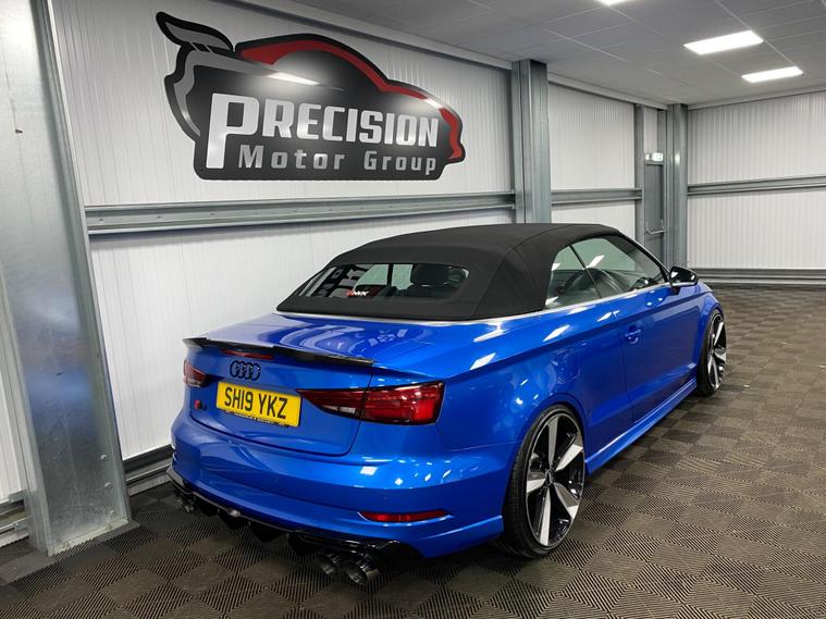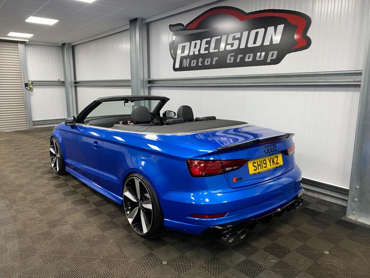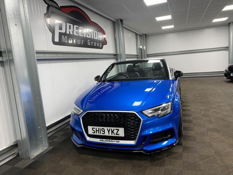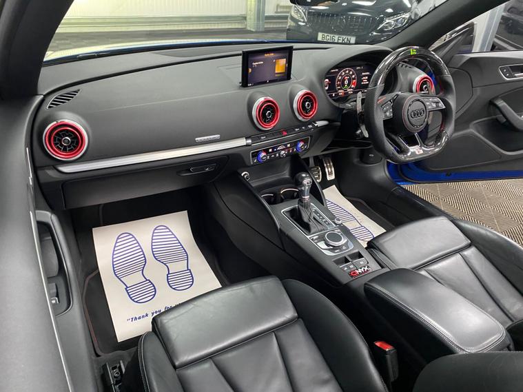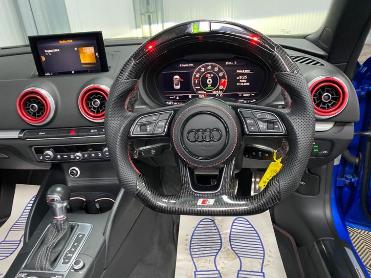 This 2019 Audi S3 TFSI boasts exceptionally low mileage for its age, having covered just 17, 000 miles. This premium hatchback is equipped with a powerful 2.0 litre petrol engine and a four wheel drive drivetrain, ensuring confident performance in all conditions. It meets Euro 6 emission standards, reflecting its modern engineering. The vehicle benefits from a comprehensive suite of packages, including the Comfort and Sound Package for an enhanced cabin experience with heated seats and a luxury branded sound system, and the Technology Package featuring Bluetooth connectivity and wireless phone charging. Furthermore, the Driver Assistance Package provides peace of mind with adaptive cruise control and blind spot assistance, complemented by front and rear parking sensors. Keyless entry is provided by the Advanced Key, and the striking Matrix LED Exterior Lighting Pack ensures excellent visibility.Experience exhilarating performance with the Audi S3's impressive 0-62mph acceleration in just 5.2 seconds, a testament to its dynamic capabilities. This performance is further enhanced by the vehicle's large boot space, offering practicality without compromising on its sporty appeal. These features collectively position this Audi S3 as a superior choice compared to other vehicles in its class, offering a blend of speed, comfort, advanced technology, and ample storage..