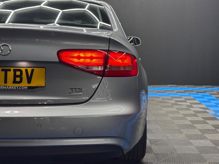 Here at Motor Gurus we are delighted to offer an Audi A4 2.0 TDI ultra SE Technik. This vehicle is in immaculate condition inside and out. This specific vehicle is finished in a METALLIC GREY and is contrasted by a BLACK LEATHER interior. This vehicle comes included with: FRONT & REAR PARKING SENSORS, AUTOMATIC HEADLIGHTS, HEATED DOOR MIRRORS, CRUISE CONTROL, TWIN CUPHOLDERS, CLIMATE CONTROL, FRONT HEATED SEATS, SAT NAVIGATION, BLUETOOTH AUDIO, TELEPHONE CONNECTIVITY, DAB RADIO, TYRE PRESSURE MONITORING AND MUCH MORE! Our Audi A4 2.0 TDI ultra SE Technik has come to us with SERVICE HISTORY and is ONLY £20 TAX! We will also provide this vehicle with a 12 MONTH MOT as well as a FRESH OIL SERVICE before it leaves our premises (OTR)..