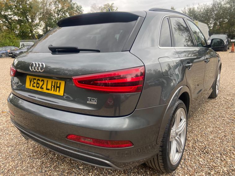 An Lovely Example Audi Q3 S-Line TDI Quattro Automatic Withg A Great Specification Including Full Glass Panoramic Sunroof, Satellite Navigation, Bluetooth Telephone, Full Leather Seats, Heated Front Seats, Multi Function Steering Wheel, Cruise Control, Climate Control, Bose Speaker System, DAB Radio, Remote Central Locking With Two Keys, Electric Heated And Folding Mirrors, Front And Rear Parking Sensors, 19'' Double Spoke Alloy Wheels, Xenon Headlights With Headlight Wash And Lots More, The Car Has A Documented Service History And Has Just Had Cambelt And Water Pump Changed An MOT Until October 2026 And Will Come With A Comprehensive Nationwide Six Months Warranty, In Metallic Grey With.