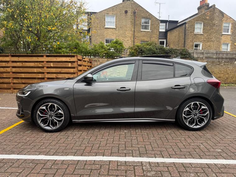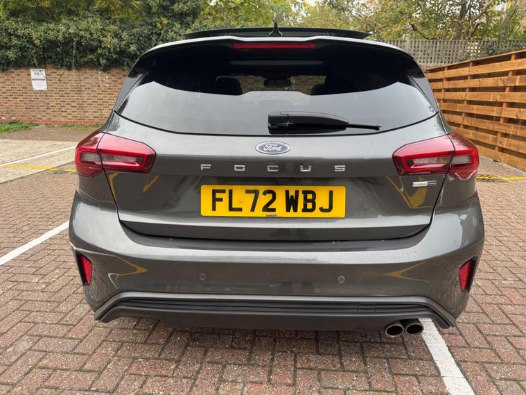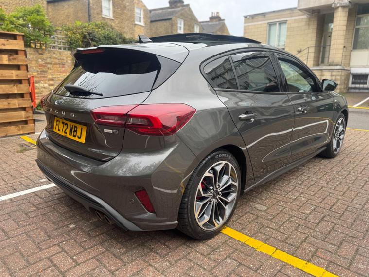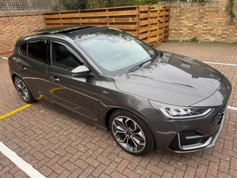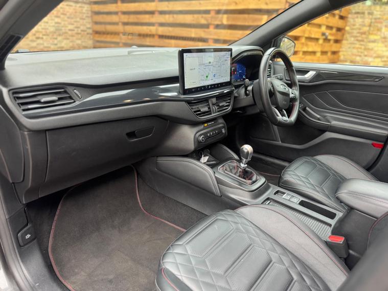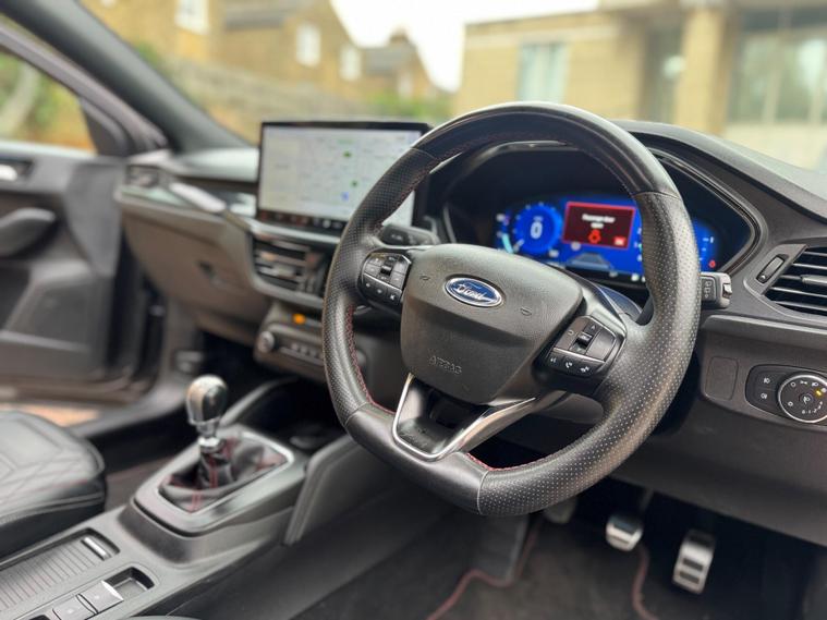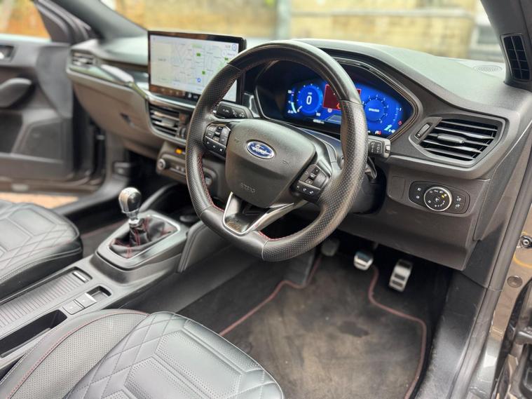 This 2022 Ford Focus ST Line Vignale is a superb example, having had only one owner since new. This striking hatchback boasts a 1.0L Petrol Hybrid engine, meeting Euro 6 emission standards, and offers an impressive 0-62mph acceleration in just 9.0 seconds. Its ST Line Vignale trim level ensures a premium feel, complemented by a host of desirable features.Experience enhanced comfort and convenience with the openable panoramic roof, perfect for enjoying the sky above. The Driver Assistance Pack, including adaptive cruise control, makes journeys more relaxed, while the Parking Pack with a rear camera simplifies manoeuvring. Stay warm on colder days with the Winter Pack, featuring heated seats and a heated steering wheel, and keep your devices topped up with convenient wireless phone charging. These features collectively elevate this Ford Focus above others, offering a refined and well equipped driving experience..
