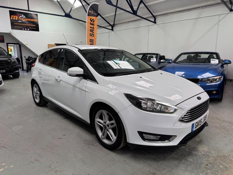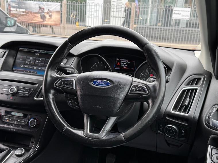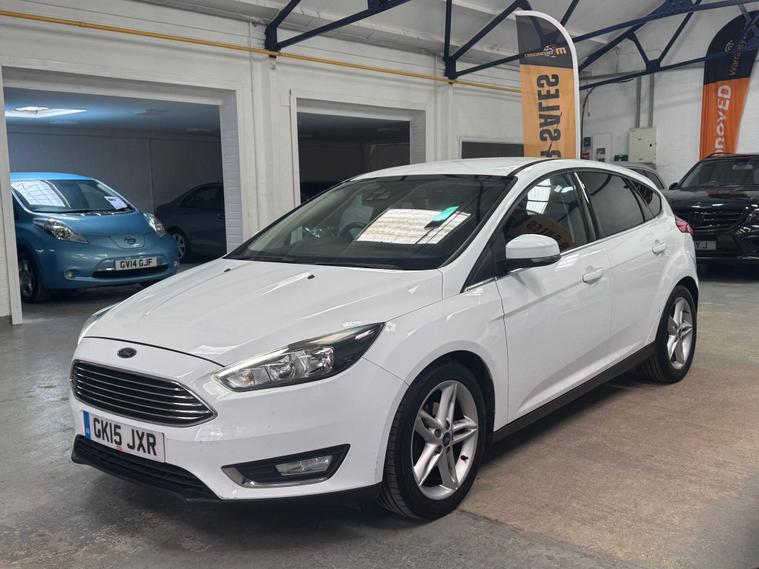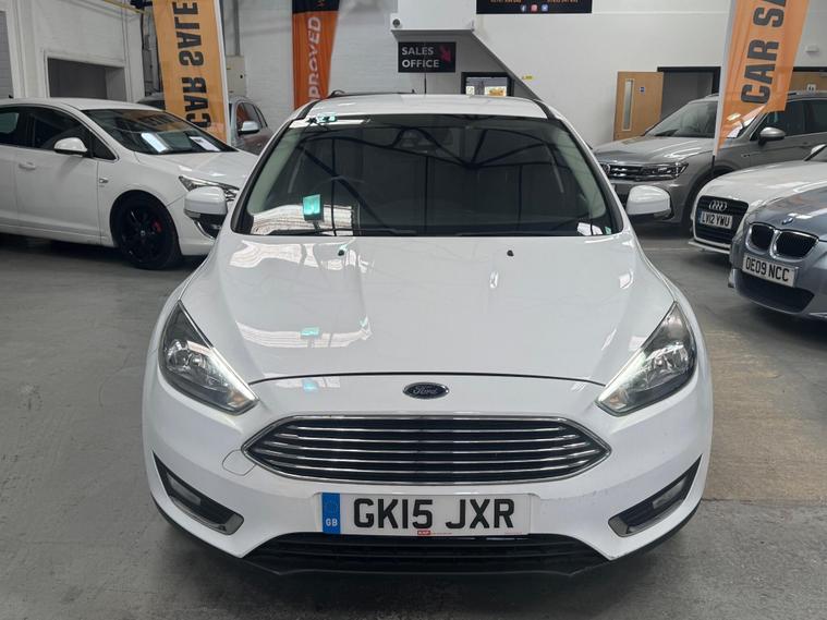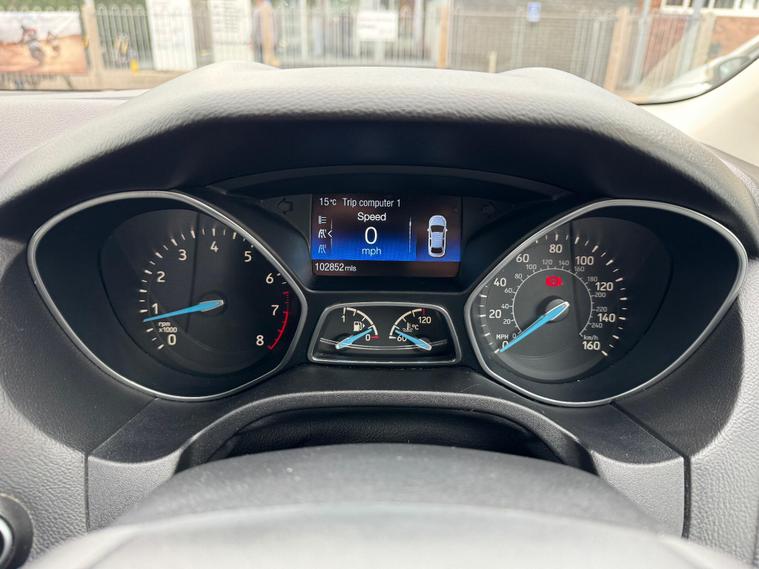 Boasting a full service history with the most recent service completed in October 2025, this 2015 Ford Focus T Titanium presents a compelling proposition for discerning buyers. This Euro 6 compliant 1.0L petrol model, registered in 2015, has been cared for by only two owners and comes with a 3 month warranty for your peace of mind. Its MOT is valid until October 2026, ensuring its roadworthiness. Notable features include the Ford SYNC2 DAB Navigation System, a KeyFree System for effortless entry and starting, rear parking sensors with assistance, and dual zone electronic automatic climate control for personalised comfort. The headlights automatically adjust, enhancing visibility and convenience.This Ford Focus Titanium stands out with its impressive fuel economy, achieving a remarkable 61 miles per gallon, which is better than many comparable vehicles. Its low CO2 emissions further contribute to its efficiency and environmental consideration. Practicality is also a strong suit, with generous boot space designed to accommodate your luggage and shopping needs with ease..
