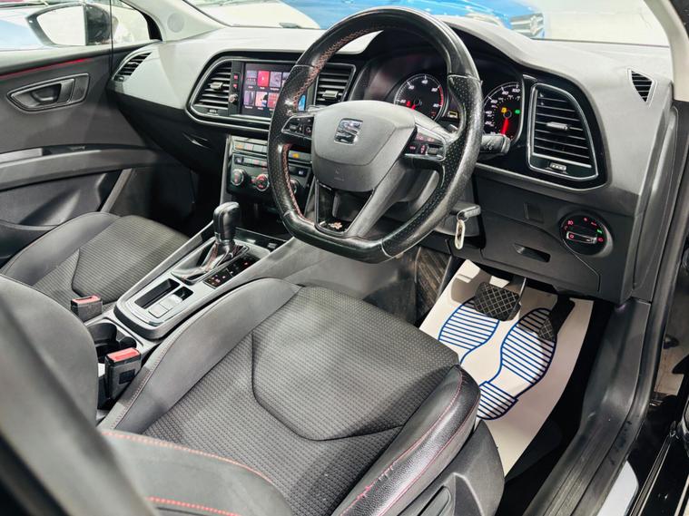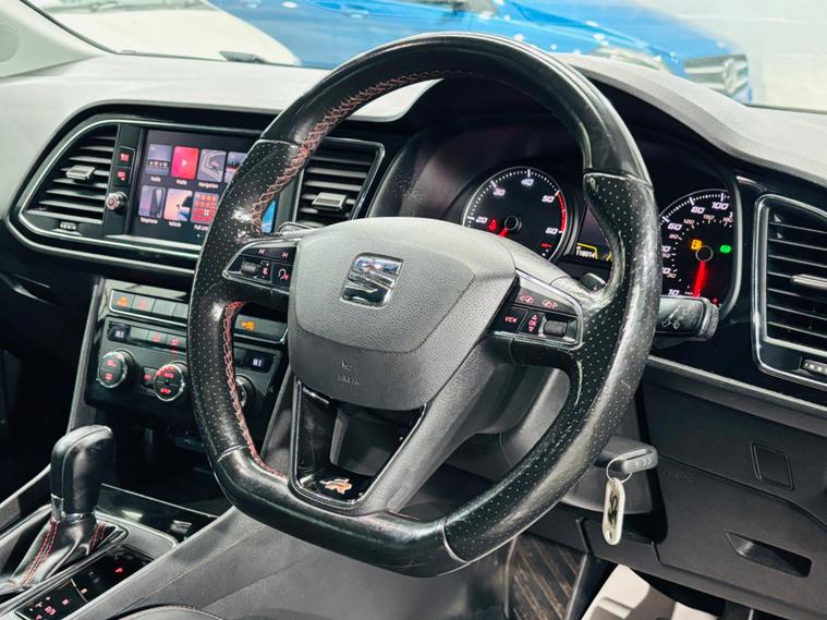 - Steering Wheel - Flat-Bottomed Perforated Leather with Red Stitching and FR Logo