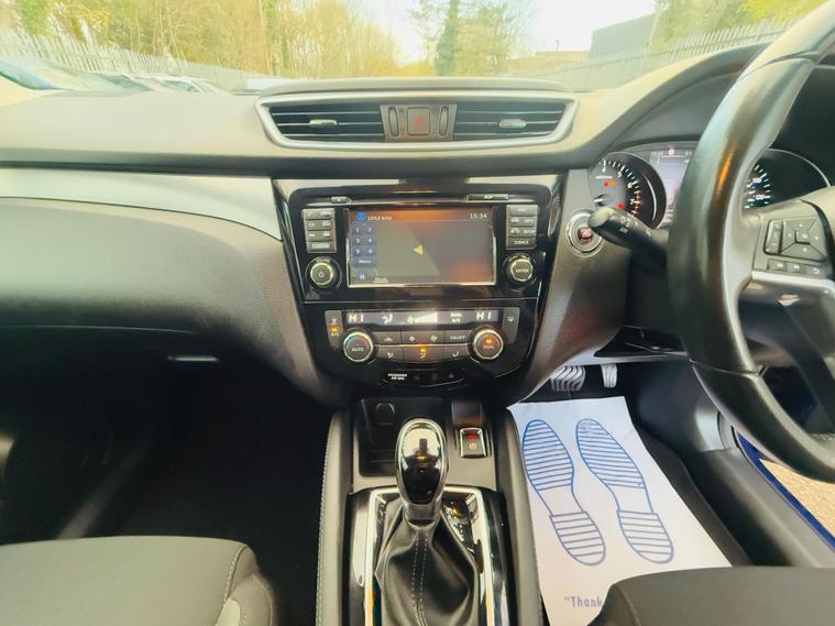 BLUE, FULL SERVICE HISTORY, FINANCE AVAILABLE, NAVIGATION SYSTEM , PARKING CAMERA, ONLY ONE FORMER KEEPER, PRIVACY GLASS, START/STOP, CRUISE CONTROL, ULEZ COMPLIANT SUPERB DRIVE, VERY ECONOMICAL, ALLOY WHEELS, CLIMATE CONTROL, VERY WELL LOOKED AFTER, VERY CLEAN IN AND OUT.This 2017 Nissan Qashqai DIG T N Connecta boasts a clear vehicle history and has had only one owner from new, offering you peace of mind. This well maintained example features a 1.2 litre petrol engine and meets Euro 6 emissions standards. The N Connecta trim level comes equipped with a Tech Pack, including front and rear parking sensors and a rear parking camera to assist with manoeuvring. You'll also find dual zone climate control air conditioning and Bluetooth connectivity for your convenience. A 12 month MOT will be provided upon purchase, further assuring its roadworthiness.This Nissan Qashqai DIG T N Connecta is designed to be economical and affordable to run, highlighted by its impressive fuel economy of 50 miles per gallon. Its low CO2 emissions and low insurance group rating mean it is more cost effective than many similar vehicles. These factors combined make this Qashqai an excellent choice for those seeking a practical and budget friendly car..