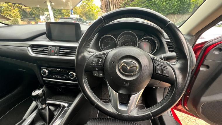 Mazda Mazda6 2.2 SKYACTIV-D SE-L Euro 6 (s/s) 4drRegistration: LT65KCVYear: 2015 (65)Mileage: 103, 850 milesFuel Type: DieselTransmission: ManualColour: RedOwners: 2ULEZ CompliantPrice: £3, 650✅ Key InformationMOT Valid Until: April 2026AA Warranty: 3 MONTHS AA WARRANTY AND 12 MONTHS AA BREAKDOWN COVERService History: Full (last serviced 04/04/2025 at 97, 007 miles)Vehicle History: Clear (HPI checked)Euro Standard: Euro 6? Model HighlightsEngine: 2.2L SKYACTIV-D DieselTransmission: 6-Speed ManualFuel Economy: Up to 72 MPGLow CO2 EmissionsLow Insurance GroupULEZ Compliant – ready for London and all clean air zones? Features & EquipmentFront & Rear Parking SensorsDual-Zone Climate Control Air ConditioningBluetooth Connectivity – Handsfree Calls & Audio StreamingCruise Control & Speed Limiter17” Alloy WheelsStart/Stop System for EfficiencyLED Daytime Running LightsMultifunction Steering WheelElectric Windows & MirrorsISOFIX Child Seat Mounts? DescriptionThis 2015 Mazda6 2.2 SKYACTIV-D SE-L is a well-maintained, two-owner vehicle offering both economy and refinement. With a full service history, including its most recent service on 4th April 2025, and an MOT valid until April 2026, this car is ready for worry-free ownership.The Euro 6 compliant diesel engine delivers exceptional fuel economy — achieving up to 72 miles per gallon — making it a cost-effective choice for long-distance drivers. Comfort features such as dual-zone climate control, Bluetooth connectivity, and parking sensors front and rear enhance convenience and safety.Supplied with a 3-month AA warranty and 12-month AA breakdown cover, this Mazda6 stands out as a stylish, efficient, and practical family saloon offering great value for money..
