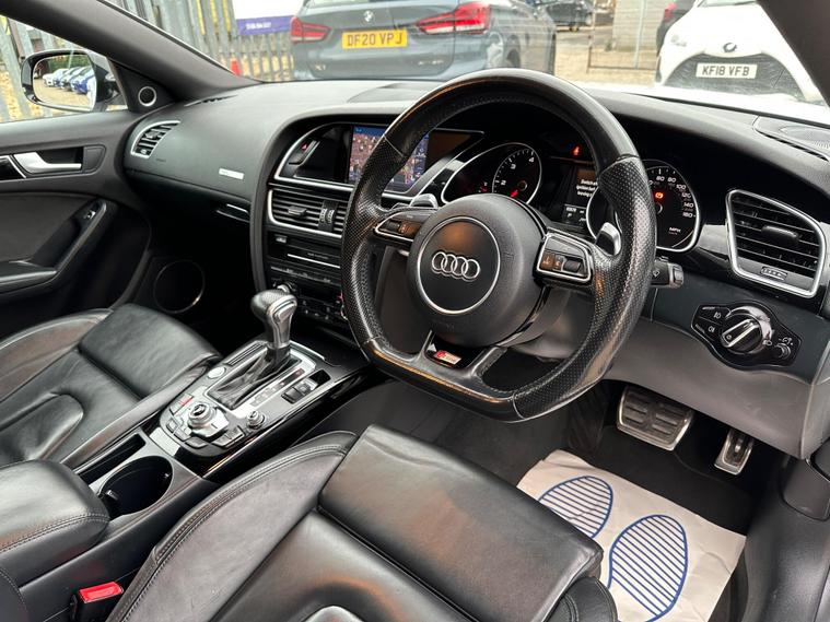 ULTIMATE MOTORS IS PROUDLY PRESENTING YOU THIS EYE CATCHING AUDI A5 BLACK EDITION 5DR IN WHITE COLOUR, COMES WITH BLACK NAPPA LEATHER UPHOLSTERY AND COMPLEMENTED WITH 19IN 10-Y SPOKE DESIGN GLOSS BLACK FINISH ALLOY WHEELS. THIS VEHCILE HAS A HUGE SPECIFCATION WHICH INCLUDES THE FOLLOWING; SATELLITE NAVIGATION SYSTEM, BLUETOOTH CONNECTIVITY FOR PHONE AND MEDIA, DAB-FM/AM RADIO, FRONT HEATED SEATS, 3 ZONE ELECTRONIC CLIAMTE CONTROL, CRIUSE CONTROL, BANG & OLUFSEN SOUND SYSTEM, FRONT AND REAR PARKING SENSORS INCLUDING REAVERING CAMERA, Bi-XENON PLUS HEADLIGHTS WUITH LED DAYTIME RUNNING LIGHTS, TYRE PRESSURE WARNING SYSTEM. THIS VEHCILE IS ULEZ EXEMPT. WE ARE OFFERING NATIONWIDE DELIVERY ON ALL VEHICLE (PLEASE GET IN TOUCH DIRECTLY FOR DETAILS). WE CAN ALSO CONDUCT VIRTUAL VIEWINGS AND ACCOMMODATE ANY REQUESTS YOU MAY HAVE. ALL OUR ADVERTISED STOCK IS TEST-DRIVEN, INSPECTED BY OUR MECHANIC TO MAKE SURE OUR CUSTOMERS DRIVE AWAY WITH THE BEST QUALITY CARS. WE CAN PROVIDE A VIDEO WALK AROUND THIS VEHICLE UPON REQUEST.ALL OF OUR VEHICLES ARE SUPPLIED WITH A 3 MONTHS WARRANTY WITH EXTENDED OPTION. 12 MONTHS FREE AA BREAKDOWN COVER. FINANCE AVAILABLE..