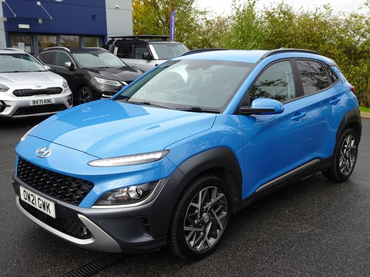 This 2021 Hyundai KONA h GDi Premium is a superb example, having been owned by just one careful keeper from new and complimented by a Full Hyundai Service History and Hyundai warranty to July 2026.This stylish compact SUV boasts a 1.6 litre petrol hybrid engine, meeting Euro 6 emissions standards. It comes equipped with a Smart Key for keyless entry and engine start stop, along with climate control air conditioning. For added convenience, it features front parking sensors and a heated steering wheel, perfect for those colder mornings. You can also enjoy seamless connectivity with Bluetooth and Apple Carplay.The Hyundai KONA h GDi Premium offers excellent running costs, achieving an impressive 57 miles per gallon, which is a highlight indicating it is more economical than many similar vehicles. Furthermore, its low insurance group rating means more affordable cover, and its low CO2 emissions further contribute to its cost effectiveness and environmental consideration. This well maintained vehicle presents a compelling choice for those seeking a practical and efficient compact SUV.These sell fast, please get in touch to avoid disappointment..
