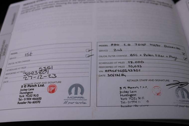 We only advertise a selection of our used cars on Autotrader. To view all our used cars currently in stock please visit our website https:/ dealer's website Be sure to check out our 360 Exterior and Interior Panorama view which is available for every vehicle.Used car event 10th - 20th October. For ten days only we are offering 5.9% APR Representative on all of our used car stock* Available on PCP and HP. Subject to status to over 18s. Indemnities may be required. Terms Apply. Mazda Financial Services. Boasting exceptionally low mileage for its age, this 2022 Fiat 500 Dolcevita presents a superb ownership proposition. This Euro 6 compliant model features a 1.0L petrol engine and benefits from a full service history, with its last service completed on 30th December 2024 at 10, 053 miles. The current mileage stands at a mere 12, 028 miles. Inside, you'll find comfort and convenience with air conditioning, while the 7in HD touchscreen radio offers Bluetooth, USB, and DAB connectivity, seamlessly integrating with Apple CarPlay and Android Auto. Further enhancing your driving experience are the rain and dusk sensors that automatically activate the headlights, and a fixed panoramic sunroof that floods the cabin with light. This Fiat 500 Dolcevita stands out with its impressive fuel economy, achieving a remarkable 61 mpg, which is significantly better than many similar vehicles. Furthermore, this model falls into a low insurance group, making it an economical choice for many drivers. These combined highlights demonstrate how this particular Fiat 500 offers excellent value and a more cost effective ownership experience compared to other cars in its class. Can't get to see it? Request a bespoke video, or we’ll come to you. This car is offered by SG Petch York, a family business. We have several dealerships working with various Manufacturers. Why not put our reputation for quality and value to the test? Call to arrange a test drive. See our customer testimonials at dealer's website