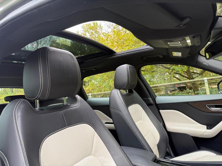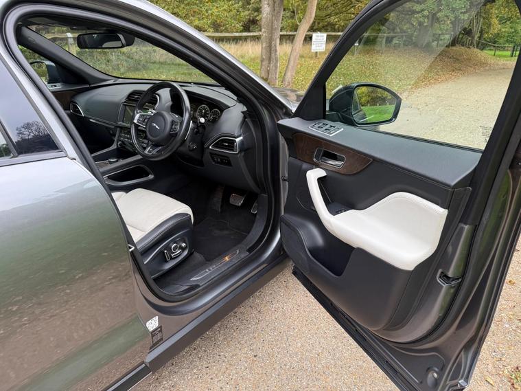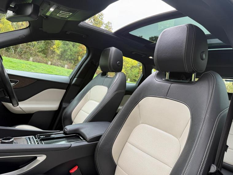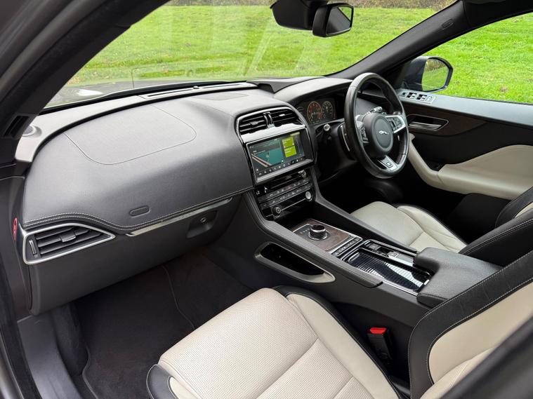 This 2018 Jaguar F-PACE P300 R-Sport is a superb example, having been cherished by just one owner since new. As a Euro 6 compliant model, it features a potent 2.0 litre petrol engine paired with a smooth Four Wheel Drive system, ensuring confident performance in all conditions. The R-Sport trim level is enhanced by the desirable Black Pack, giving it a striking visual presence, complemented by stylish 19 inch Gloss Black alloy wheels. Inside, you'll find a spacious cabin, a large boot perfect for luggage or shopping, and the impressive Head Up Display Pack for effortless information access.Experience exhilarating performance with this F-PACE, capable of accelerating from 0 to 60mph in a swift 5.7 seconds, a testament to its dynamic capabilities. The inclusion of a Sliding Panoramic Roof, complete with an opening sunroof, floods the interior with light, creating an airy and inviting atmosphere. Furthermore, the Surround Camera System offers a 360 degree view, making parking and manoeuvring in tight spaces remarkably easy. With a substantial towing weight of 2400 kg, this Jaguar F-PACE P300 R-Sport is as practical as it is stylish, offering a superior driving experience..