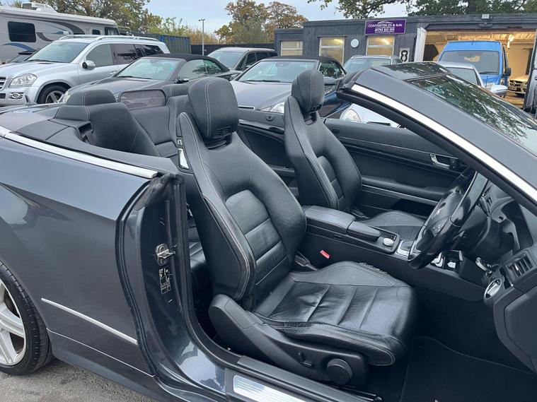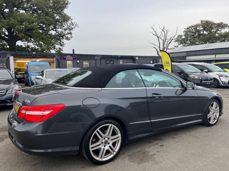 THIS Mercedes-Benz E Class 3.0 E350 CDI V6 BlueEfficiency Sport Cabriolet G-Tronic AUTOMATIC Euro 5 2dr POWER ROOF CONVERTIBLE LOOKS GREAT IN GREY PEARLESCENT METALLIC WITH EBONY FULL LEATHER ELECTRIC HEATED MEMORY COMFORT SEATS THE CONVERTIBLE HAS A GREAT SERVICE HISTORY AND IS GOOD MILEAGE 83K & ONLY DONE 3000 MILES SINCE. THE POWER CONVERTIBLE ROOF HAS P.A.S. STEREO RADIO WITH CD PLAYER, COLOUR WIDE TOUCH SCREEN COMMAND SAT NAVIGATION SYSTEM, BLUETOOTH TELEPHONE CONNECTION, DUAL ZONE CLIMATE CONTROL AIR-CONDITIONING, LED DAYTIME RUNNING LIGHTS WITH AMG STYLING PACKAGE TO THE FRONT AND REAR BUMPERS AND SIDE SKIRTS, REMOTE CONTROL CENTRAL LOCKING SYSTEM, ZENON HEADLIGHTS, FRONT AND REAR PARKING SENSORS, 18 INCH M SPORT ALLOY WHEELS WITH GOOD TYRES. This 2011 Mercedes Benz E Class E350 CDI V6 Sport presents a compelling proposition with its remarkably low mileage of just 83, 000 miles and a history of only three owners. Beneath its refined exterior lies a powerful 3.0 litre diesel engine, paired with the Sport trim for an engaging driving experience. Inside, you'll find the sophisticated COMAND Multimedia system, complete with satellite navigation, a 7 inch screen, media interface, radio, 6CD and DVD player, MP3 compatibility, and linguatronic voice control, alongside a 6GB internal memory and a memory card slot. Further enhancing convenience and safety are the reversing camera with parking assistance, DAB digital radio, and automatic climate control.The performance of this E Class is noteworthy, achieving 0-62mph in a swift 6.9 seconds, a figure that highlights its dynamic capability. This acceleration, combined with its low insurance group, suggests a well balanced ownership proposition. The inclusion of telephone pre wiring with handsfree functionality and a roof aerial ensures seamless connectivity on the go. These elements collectively demonstrate a vehicle that offers a superior blend of performance, technology, and practicality compared to other models in its class..