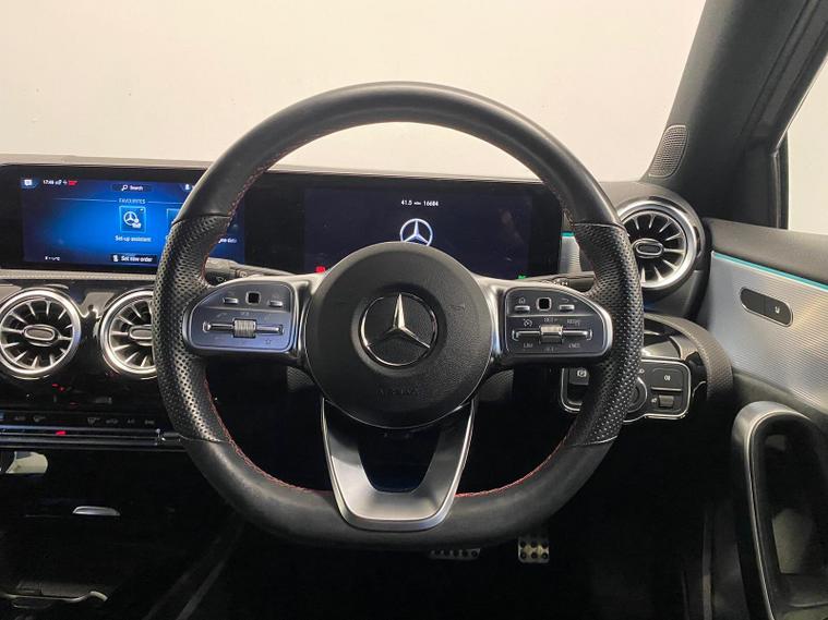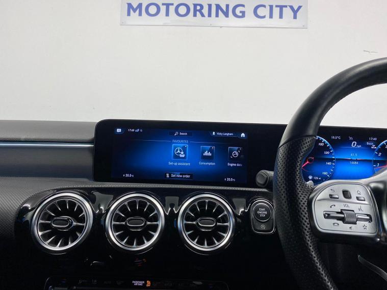 This 2023 Mercedes-Benz A Class A180 AMG Line (Executive) boasts an exceptionally low mileage of just 17, 000 miles, coupled with a full dealership service history and a clear vehicle history check, ensuring excellent provenance. This single owner vehicle is a Euro 6 compliant 1.3L petrol model, offering a blend of efficiency and performance. It comes equipped with the desirable AMG Line trim and features such as the Parking Package, which includes front and rear sensors and a 180 degree reversing camera with guidelines, making manoeuvring effortless. Inside, you'll find THERMOTRONIC luxury automatic climate control for personalised comfort, a 100W Mercedes-Benz sound system for an immersive audio experience, and convenient wireless phone charging.The Mercedes-Benz A Class A180 AMG Line (Executive) excels with its impressive acceleration, reaching 0-62mph in just 8.8 seconds, a testament to its dynamic performance. This capability, combined with its generous boot space, positions it favourably against other vehicles in its class, offering both practicality and an engaging driving experience. Furthermore, the vehicle will be supplied with a 12 month MOT, providing added peace of mind for its next owner..