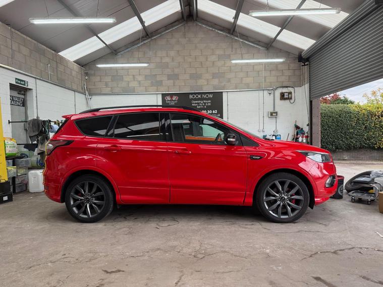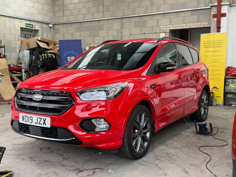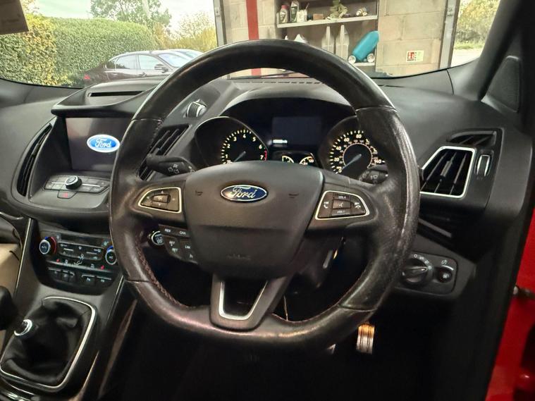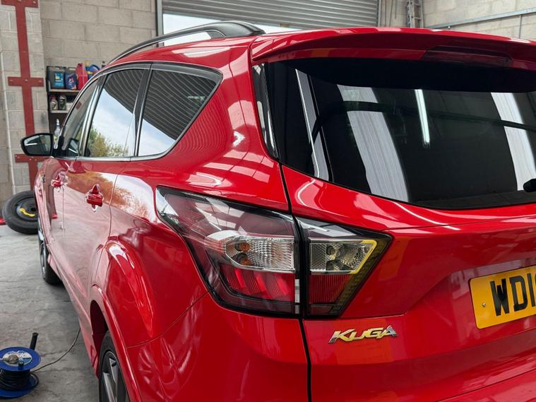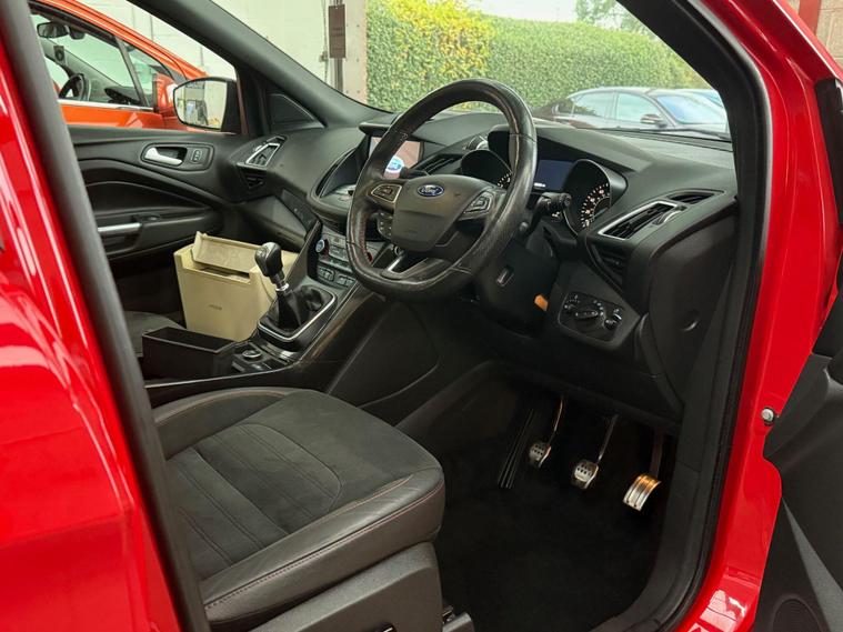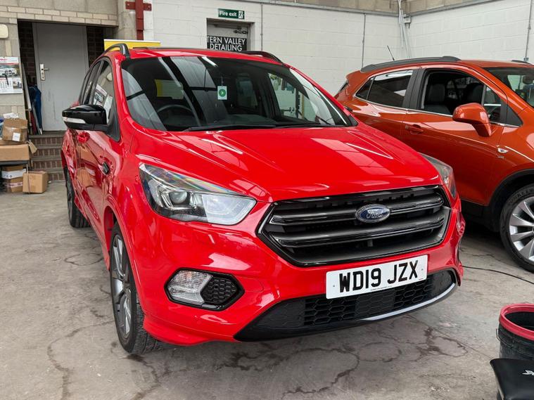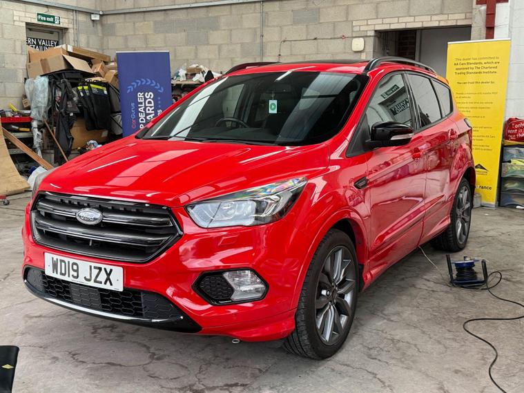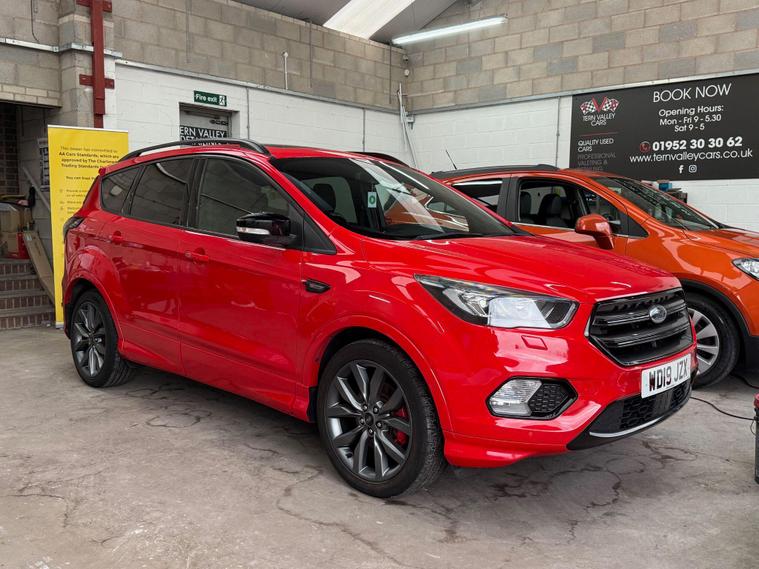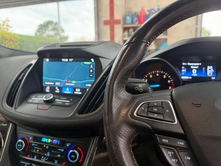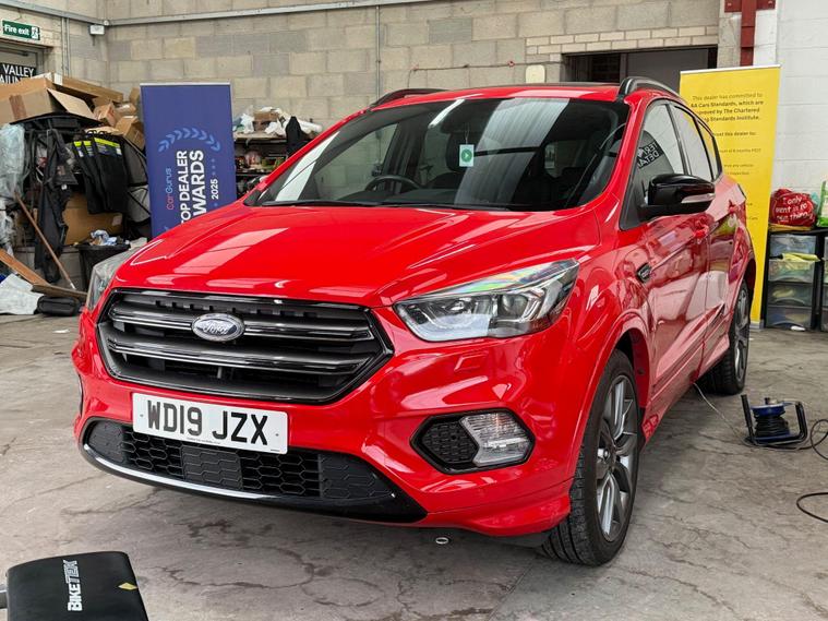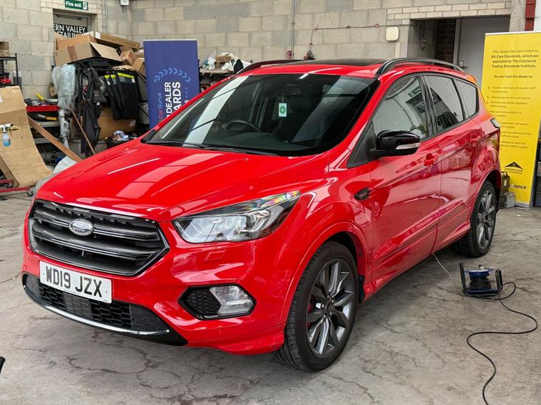 This 2019 Ford Kuga T ST-Line Edition boasts a full service history, ensuring its excellent provenance. This stylish SUV is equipped with a 1.5L Euro 6 petrol engine and comes with an MOT valid until April 2026. Inside, you'll find a Premium Ford DAB Navigation System featuring Ford SYNC3, which seamlessly integrates Android Auto and Apple CarPlay, along with Bluetooth connectivity and a branded sound system. For convenience, it includes a Ford Key Free System for keyless entry and start, and a power opening panoramic roof for an airy cabin experience. We sell with a 6 month Warrantywise Platinum warranty and a new 12 months MOT, also an annual service completed for further peace of mind. 2 x keys & all handbooks on this smoker free lovely car. 12 Months AA Breakdown Membership included. AA Driveaway 5 Day Insurance available - Only £44.99 NEED FINANCE? No Problem - SAF Registered. Simply click 'Apply for finance' on our website dealer's website We are a FCA registered dealership. Prime or subprime finance. Excellent finance rates starting from as low as 10.9% APR (Subject to status and terms and conditions). For any further information and details to view please contact David, who has over 50 years personal Motor Trade experience. Buy with confidence. Delivery to your door is available, please ask for a quote. Just arrived & many more images when valeted.The Kuga ST-Line Edition offers enhanced driving and parking capabilities. The Enhanced Active Park Assist, complete with front and rear parking sensors, makes manoeuvring in tight spaces effortless, further supported by a rear parking camera. These features collectively demonstrate a superior level of specification and driver assistance compared to many other vehicles in its class, making this Ford Kuga a well maintained and feature rich choice..