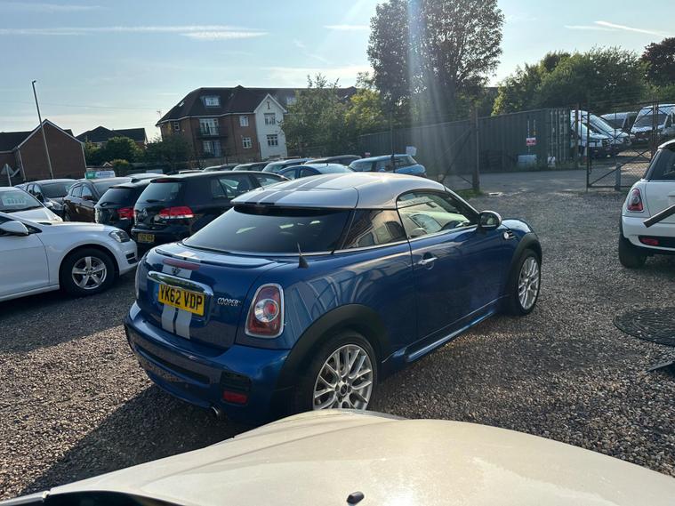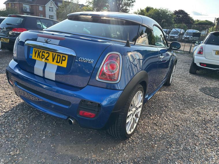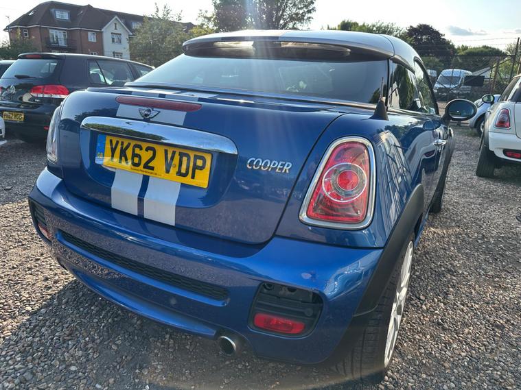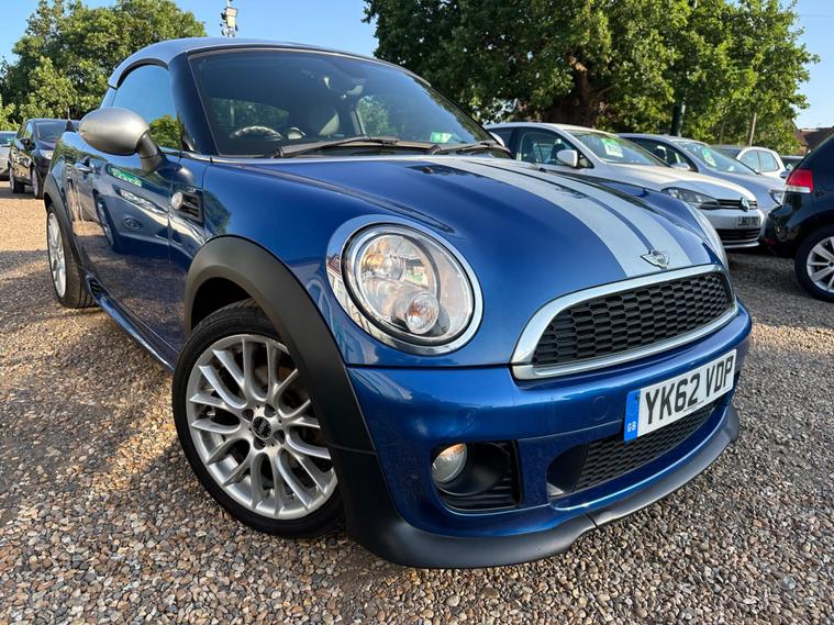 ******** SAME DAY FINANCE AVAILABLE ******** COMES WITH 03 MONTHS FREE WARRANTY ********* **********PERFECT EXAMPLE OF EXCELLENT CAR********* Another Perfect example of 2012 Mini Mini Cooper 1.6 Coupe 16V Limited Edition Euro 5 (s/s) SE Special Edition 2 dr Coupe , 4 Seats 105 bhp with Metallic Blue / White Colour and Full Grey Leather Interior which has just covered 88000 miles (warranted) . M A N U A L , 88000 Miles , 2012 MINI MINI COOPER 1.6 COUPE 16V Limited Edition EURO 5 (s/s) SE Special Edition 2 dr Coupe , 105 bhp , 4 Seats , 62 Reg , Metallic Blue / Silver Colour , Excellent Condition , Full Grey / Black Leather Interior , Power Steering , Remote Central Locking , Adjustable Steering Column / Wheel , Front and Rear Head Restraints , Immobiliser , Front and Rear Fog Lights , Traction Control , Iso-fix child seat , A I R C O N D I T I O N I N G / Climate Control , Anchor Points , A B S , Body colour Bumpers , Multiple Air - bags , Electric Mirrors , Radio / CD Player , Alloy Wheels , Just been Fully Valeted , Full Service History + Old m.o.ts to Prove Mileage , 4 Good Tyres , M.O.T Till OCTOBER 2026 , Ideal First / Family Car , Very Clean in and out , Cheap to Run and insure , Cheap to Tax , Price for Quick sale ..