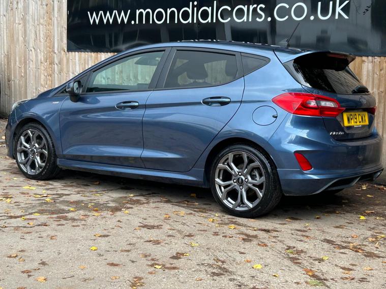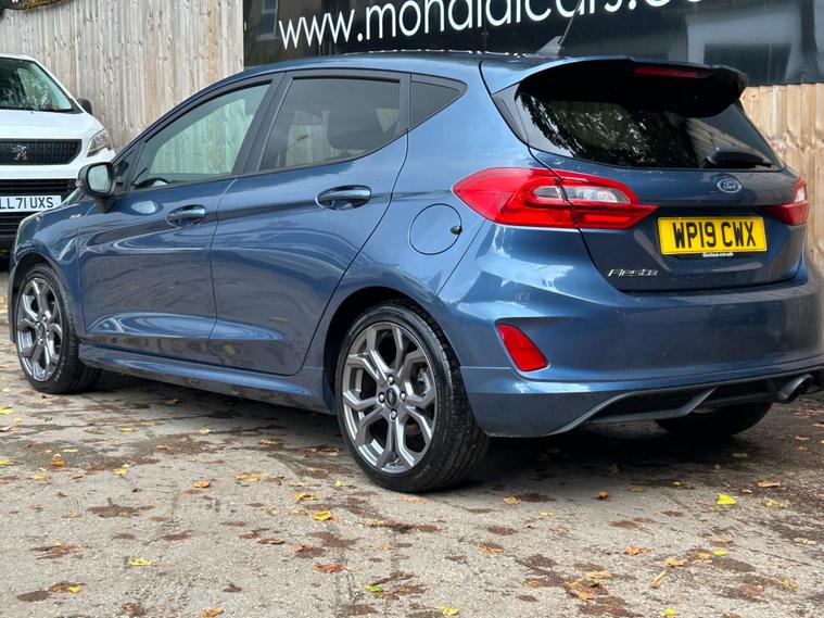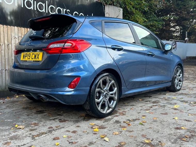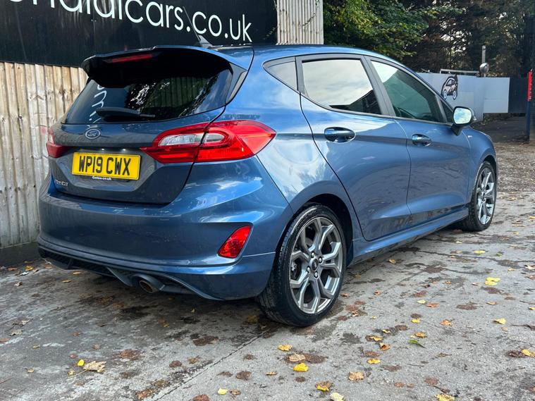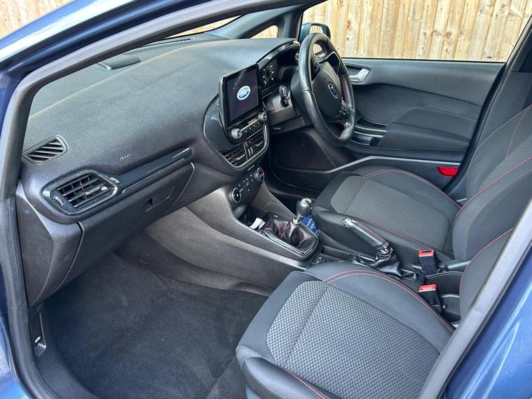 This 2019 Ford Fiesta ST Line offers a compelling blend of sporty design and practical technology. Powered by a 1.0 litre petrol engine, this Euro 6 compliant model boasts low CO2 emissions, making it an efficient choice. Notable features include automatic on-off headlights for convenience and safety, manual air conditioning to keep you comfortable, and the Ford SYNC system with a touchscreen. This system integrates DAB radio, Apple CarPlay, and Android Auto, allowing seamless connection with your smartphone for music and navigation.The Ford Fiesta ST Line is designed to impress, with an acceleration of 0-62mph in just 10.0 seconds, demonstrating its responsive performance. These highlights indicate how this particular Fiesta stands out from other similar vehicles, offering a more engaging and connected driving experience. Its combination of efficient performance, modern technology, and sporty ST Line styling makes it a desirable option for those seeking a well equipped and enjoyable compact car..