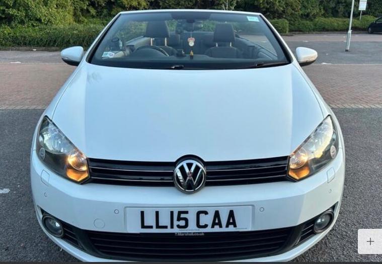 THIS Volkswagen Golf 1.4 TSI SE Cabriolet DSG Euro 5 2d CONVERTIBLE AUTOMATIC LOOKS AMAZING IN WHITE PEARL & CONTRASTING GREY CLOTH SEATS WITH CONTRASTING DOOR CARDS & HEADLINING YES VERY SMART. THE LAST LOCAL OWNER HAS LOVED THE CONVERTIBLE FOR YEARS YOU CAN TELL THAT BY THE SUPERB NEW CONDITION THE CABRIO IS IN YES AND IT'S REALLY LOW MILEAGE FOR THE YEAR ONLY 49K WITH A GOOD SERVICE HISTORY. EXTRAS INCLUDE.STEREO RADIO AND CD-MULTI-PLAYER, BLUE TOOTH TELEPHONE CONNECTION, CRUISE CONTROL, FRONT & REAR PARKING AID, DUAL ZONE DIGITAL CLIMATE CONTROL AIR-CONDITIONING, REMOTE CONTROL CENTRAL LOCKING, 17 INCH ALLOYS. THERE ARE 2 SETS OF REMOTE KEYS AND ALLThis 2015 Volkswagen Golf TSI SE presents an exceptional opportunity with its remarkably low mileage of just 50, 000 miles for its age, complemented by a clear vehicle history check. This popular hatchback is equipped with a 1.4 litre petrol engine and features practical parking sensors both front and rear, along with automatic dusk sensing headlights for enhanced visibility. Inside, you'll find the comfort of 2 zone electronic climate control with automatic air recirculation and the convenience of Bluetooth telephone preparation for hands free calls. The Golf TSI SE offers a compelling package of benefits, indicating its superior value compared to similar vehicles. Its impressive fuel economy of 45 miles per gallon means fewer trips to the petrol station, while its low CO2 emissions contribute to a more environmentally friendly drive. Furthermore, its low insurance group rating makes it an economical choice for many drivers, and the generous boot space ensures you have ample room for shopping or luggage..