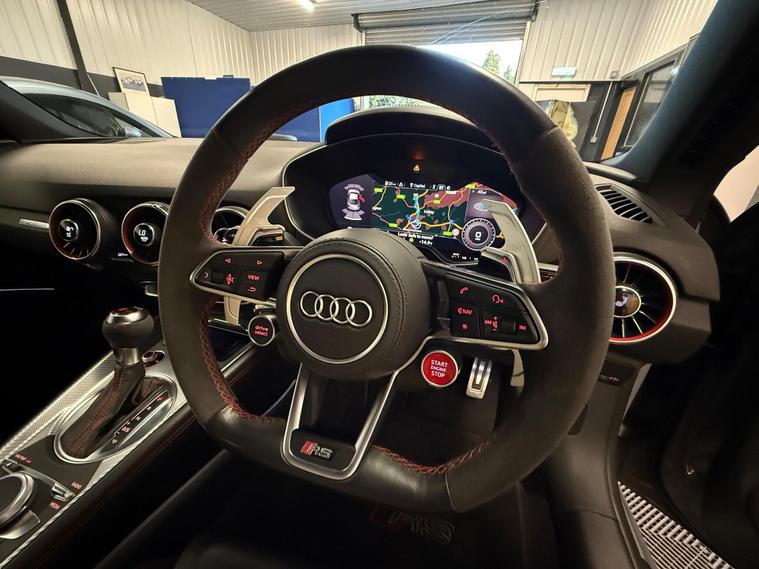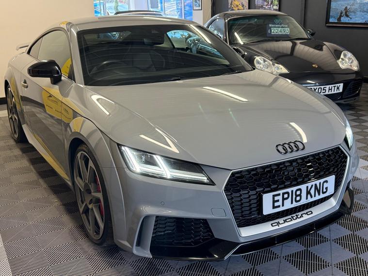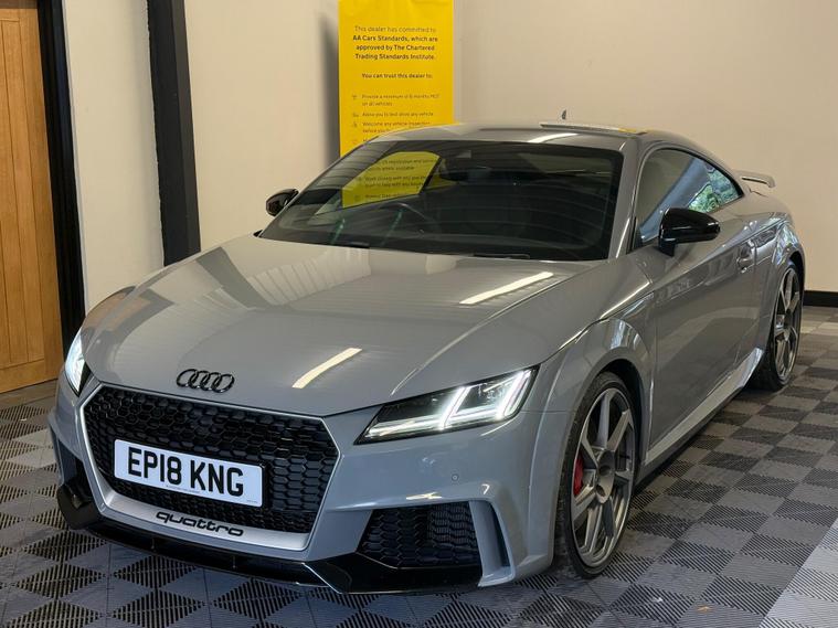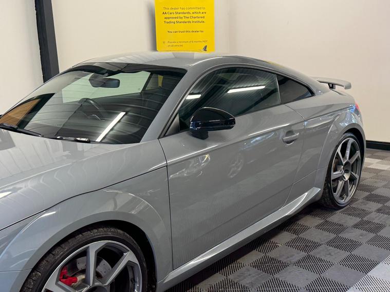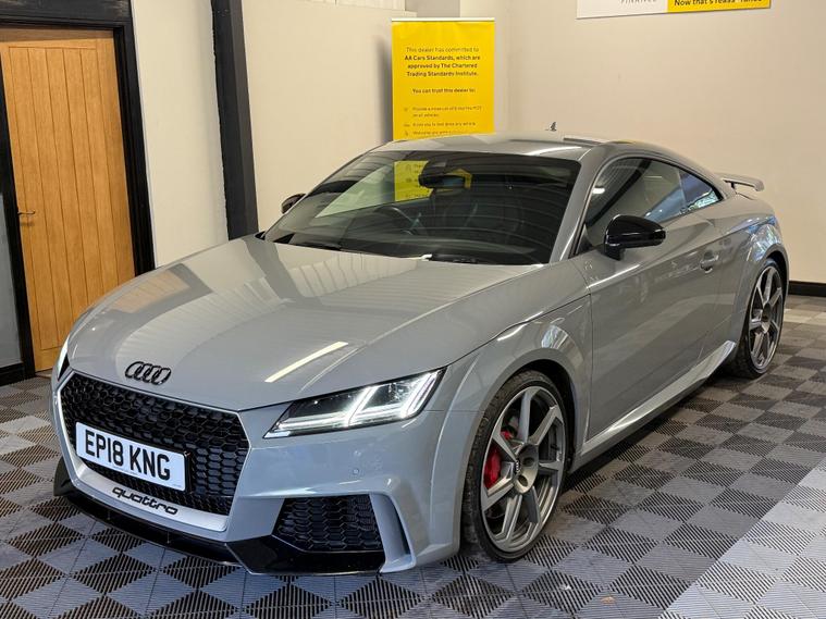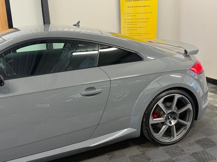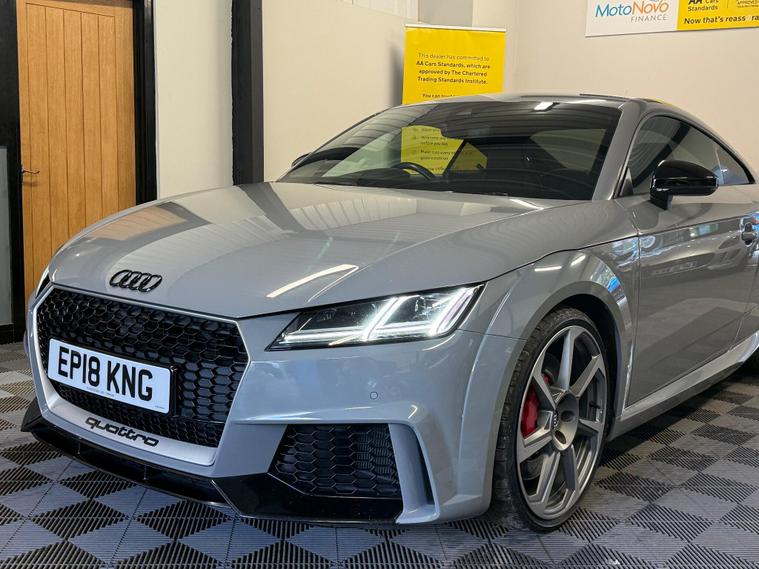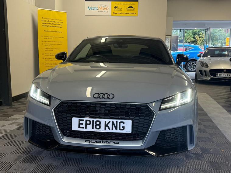 2018 Audi TT RS 2.5 TFSI S Tronic quattro Euro 6 (s/s) 3drLow miles | 3 former keepers | 2 keys | Audi service historyA stunning example of the sought-after Audi TT RS, finished in Nardo Grey with a black and crescendo red interior. Powered by the incredible 2.5 TFSI engine and quattro all-wheel drive, this TT RS delivers breathtaking performance combined with everyday usability.Service history: Pre-delivery inspection, 2019, 2020, 2021 (service, brake fluid change, AWD coupling oil), 2022 (service, brake fluid, dust and pollen filter, AWD oil), 2023, 2024 (service and dust/pollen filter), and an independent service in September 2025 including new brake pads all round. A new MOT will be completed as part of the preparation process. This TT RS comes with an exceptional specification including the Comfort and Sound Pack with Bang & Olufsen sound system, rear-view camera, Audi advanced key, and Hold Assist. It also features the Design Pack – Catalunya Red with special colour trim detailing and the Exterior Aluminium Styling Pack.Further highlights include 20-inch 7-spoke rotor titanium alloy wheels, red brake calipers, Mag Ride with RS Sport suspension, Audi Matrix LED headlights, Matrix OLED rear lights, adaptive headlights, privacy glass, Audi phone box with signal booster, and a sports exhaust system.A 3-month comprehensive warranty is included as standard, with the option to extend for up to two years for added peace of mind.Part exchange is welcome, and our Buying Department can provide prompt valuations. Nationwide delivery is available at a cost on request, and you can reserve this vehicle today with a £250 fully refundable deposit.We have over 150 vehicles in stock across our Bromsgrove and Wellesbourne sites. As an AA Approved Dealer with Trading Standards endorsement, you can buy with confidence.We are authorised and regulated by the Financial Conduct Authority (FRN: 1014981)..