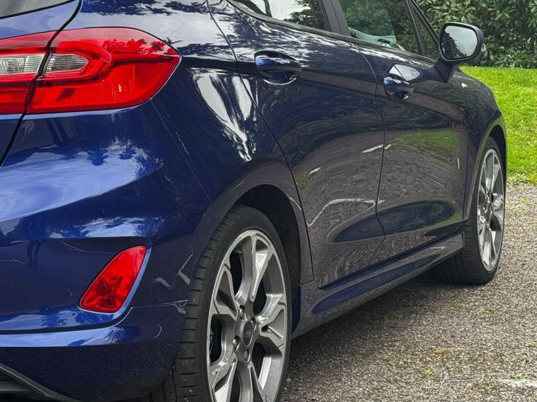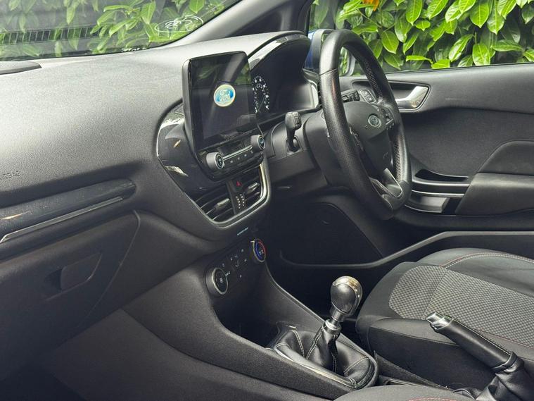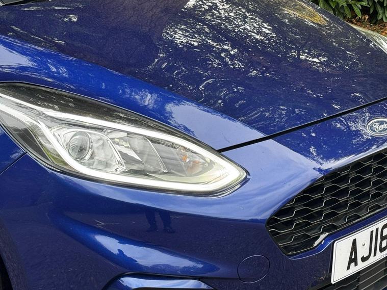 This 2018 Ford Fiesta ST-Line offers an engaging driving experience with its sporty design and responsive performance. Powered by a 1.0 litre petrol engine, this Euro 6 compliant model delivers an impressive 0-62mph in just 9.0 seconds. Inside, you'll find the Ford DAB Radio with Ford SYNC3, seamlessly integrating Apple CarPlay and Android Auto for your convenience. The vehicle also features automatic on-off headlights and manual air conditioning, ensuring comfort and ease of use on every journey.With a remarkable fuel economy of 55 mpg, this Fiesta ST-Line is an economical choice, also benefiting from low CO2 emissions. These highlights demonstrate how this particular Ford Fiesta stands out from other similar vehicles, offering a blend of performance, technology, and efficiency that makes it a compelling option for any driver..