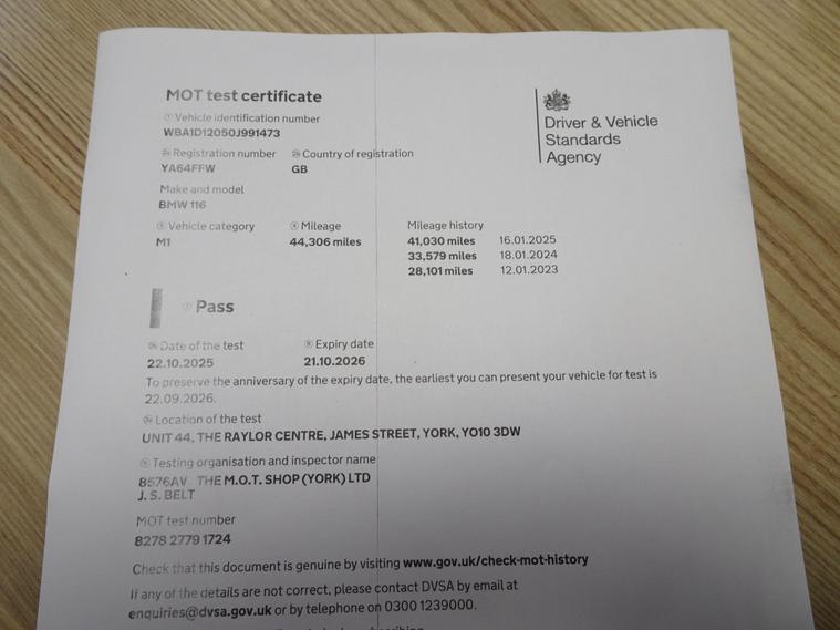 We are delighted to offer for sale this 2015 BMW 1 Series 116i Sport which represents an exceptional find having only 1 owner from new and an extremely low mileage of 44302 miles. This Euro 6 compliant model boasts a 1.6 litre petrol engine and comes with a full service history and a clear vehicle history check, ensuring peace of mind. The Sport trim enhances the driving experience with supportive front sport seats, while practical features include rear Park Distance Control for easier manoeuvring, electric front windows with fingertip control, and a Bluetooth hands free system with USB audio interface for seamless connectivity. The rain sensor automatically activates the headlights, adding to the convenience.This BMW 1 Series is designed to impress, offering a compelling blend of performance and practicality that sets it apart. Its acceleration from 0 to 62mph in just 8.7 seconds demonstrates its spirited performance, a notable advantage over many comparable vehicles. Furthermore, its low insurance group rating makes it an economical choice for many drivers. You will also appreciate the generous boot space, providing ample room for shopping or luggage, making this 116i Sport a versatile and appealing option. Supplied with a fresh Service, 12 Months MOT (no advisories) and our own Workshop Inspection. This low mileage, one owner, Automatic BMW 1 Series is one not to be missed!. Call now to avoid disappointment!.