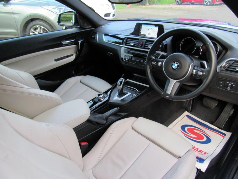 Hello & welcome to CMC Automotive. Here at CMC we are an approved AA trusted dealer. All vehicles come with nationwide warranty. We are delighted to offer this beautiful, 1 owner from new BMW 220i M sport Auto Euro 6. Only 1 lady owner from new with a full service history record. 2 Keys. Finished in Estoril blue metallic with heated Oyster Dakota leather interior with piano black accents. Boasts an excellent specification, please see below for full specification & extras. THIS VEHICLE COMES HPI CLEAR. AA HISTORY CHECKED. WE OFFER COMPETITIVE FINANCE PACAKGES, APPLY ONLINE. NATIONWIDE DELIVERY AVAILABLE. EXTENDED WARRANTIES AVAILABLE. FCA APPROVED DEALER. ICO COMPLIENT DEALER. PART EXCHANGE WELCOME..