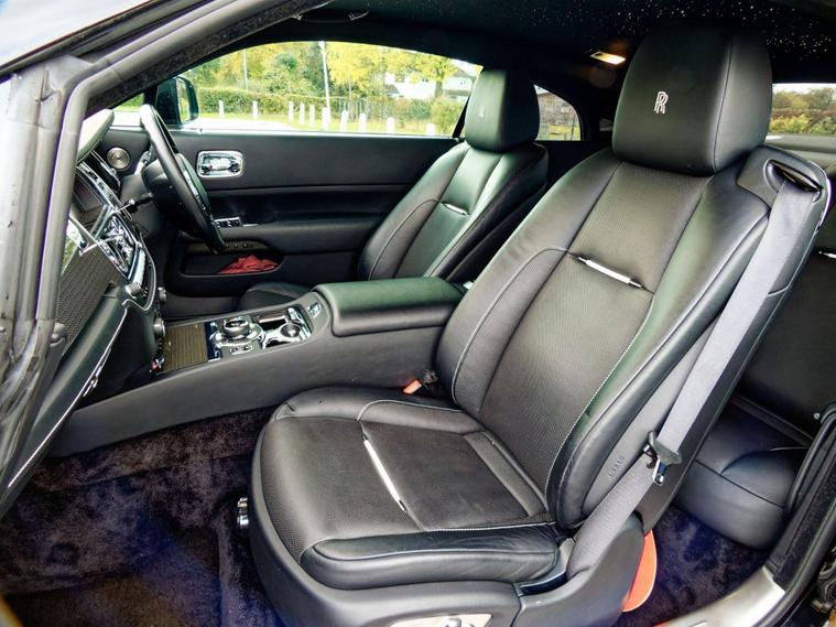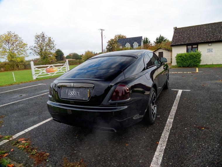 The Essex Car Group Ltd are delighted to offer this Stunning Rolls-Royce Wraith Black Badge (ULEZ EURO 6) in Black with Full with Full Back leather interior.. Spec includes, 21in 5 Split spoke alloys in Gloss Black, Head-Up Display, Full black pack, Heated front seats, Tyre Pressure Monitoring, Comfort Entry System, Rear View Camera, Adaptive LED Headlights, High-Beam Assistance, Lane Departure Warning, Side View Cameras, Satellite Navigation, Head-Up Display, Chrome Plated Visible Exhausts, Starlight Headlining, Rain sensing windscreen wipers, Bespoke audio system, Carbon interior panels. RR in headrests, privacy glass, Bluetooth includes phone connection and music streaming, Connections for iPod (front) and USB (front), Remote controlled remote boot/hatch/rear door release, Upgraded warranty available. Finance available. Part ex-welcome. Please check spec with a member of staff as Autotrader spec can be incorrect. Please call to arrange a viewing 01277517184 or 01277517184 (out of hours).