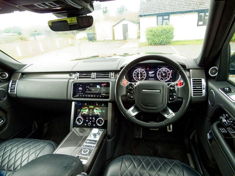 The Essex Car Group Ltd are delighted to offer this stunning Range Rover 5.0 P565 V8 SV Autobiography Dynamic (ULEZ EURO 6) in Santorini Black Interior in Full Oxford Leather - Ebony with Ebony-Ivory Interior. Massive Spec includes 22 x 9.5 forged magnum wheel, 360 parking aid, head up display, headlamps - led pixel plus, Panoramic roof, rear entertainment scrn - 10.2 inch, rear headrest power 4-way winged, rear seat - massage lumbar, heated/cld frt & rr seats w/heating, Meridian super premium audio 2500 w, 40/20/40 super slouch rear seat, acc + adaptive lane control, lane departure warning+keep assist, android auto/Apple carplay, blind spot assist, configurable ambient lighting, console-w/armrest + fridge, driver/pass elec fr seat adj/memory, electronic air suspension with ace, limited package, privacy glass, park assist, rear centre armrest heated, reverse traffic detection, surround camera system, traffic sing recogn./speed limiter, water wading aid, heated steering wheel, heated windscreen, solar attenuating windscreen, Soft close doors, Upgrade warranty available. Finance available. Part ex welcome. Please check spec with a member of staff as Autotrader spec can be incorrect. Please call to arrange a viewing 01277517184 or 01277517184 (out of hours)..