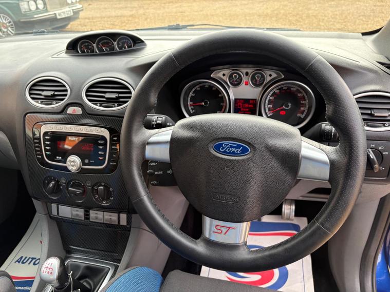 This 2010 Ford Focus ST-2 presents a compelling blend of performance and practicality. Under the bonnet, you'll find a potent 2.5 litre petrol engine, delivering an exhilarating 0-60mph time of just 6.5 seconds. Finished in an attractive metallic paint, this ST-2 model also boasts a premium Sony DAB digital radio with a 6 CD player, ensuring your journeys are accompanied by excellent sound quality.Beyond its impressive acceleration, this Focus ST-2 offers practical advantages that set it apart. Its low insurance group rating makes it an economical choice for many drivers, while the generous boot space provides ample room for luggage, shopping, or sports equipment. These features combine to make this Ford Focus ST-2 a well rounded and desirable vehicle. This is a local car that has been owned by an older couple for the last 11 years and is as factory original as they come ..