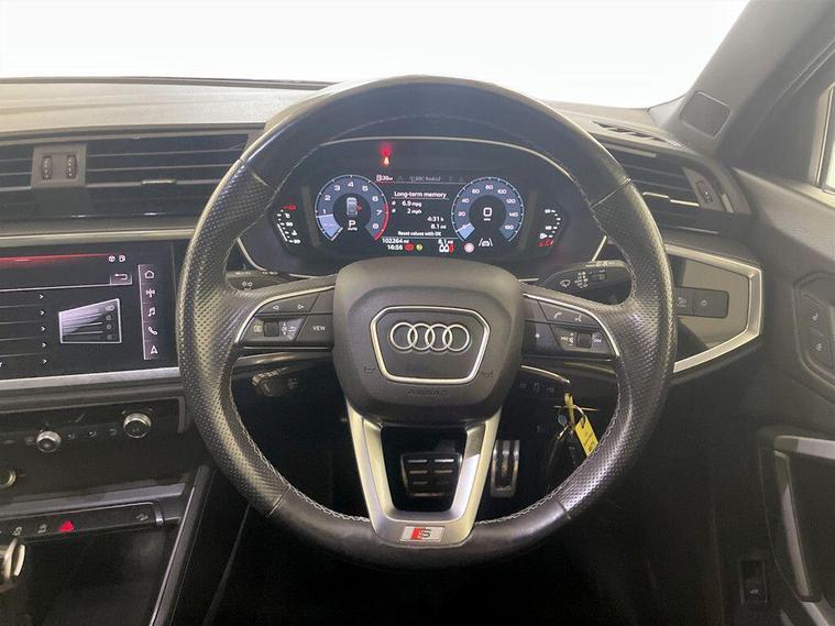 This 2021 Audi Q3 TFSI S line is a superb example, having been owned by just one careful keeper. This stylish SUV boasts a 1.5 litre petrol engine, meeting Euro 6 emissions standards, and comes equipped with the desirable S line trim. Inside, you'll find a host of convenient features, including a Bluetooth interface for seamless audio streaming and calls, and dual zone electronic climate control to keep everyone comfortable. The Audi Smartphone Interface offers wireless Apple CarPlay and Android Auto, keeping your favourite apps accessible. Parking is made easier with rear parking sensors, and the light and rain sensor automatically adjusts headlights and wipers. The Audi Q3 TFSI S line offers an engaging driving experience, with a brisk 0-62mph acceleration time of just 9.4 seconds. These specifications demonstrate its strong performance compared to other vehicles in its class. This particular model combines Audi's renowned build quality with practical technology and a sporty aesthetic, making it an excellent choice for those seeking a premium compact SUV.For peace of mind this vehicle has only had 1 registered owner and has completed a multi point AA dealer's website finance is also available.We are open 7 days a week and have more than 1500 cars to choose from.All our Euro 4 Petrol and Euro 6 Diesel vehicles meet the ULEZ standard.Vehicle specification can be found below. From time to time vehicles have manufacturer recalls notified. Please read our recall policy on our website for further information..