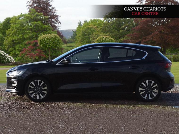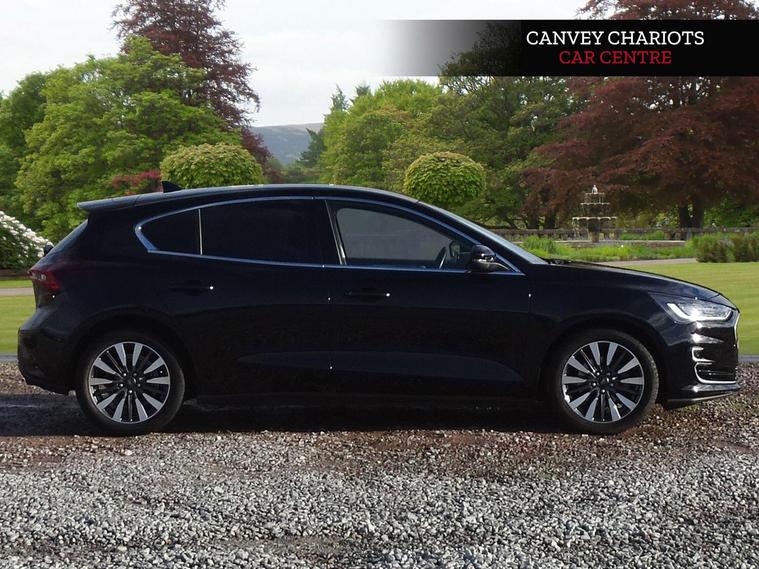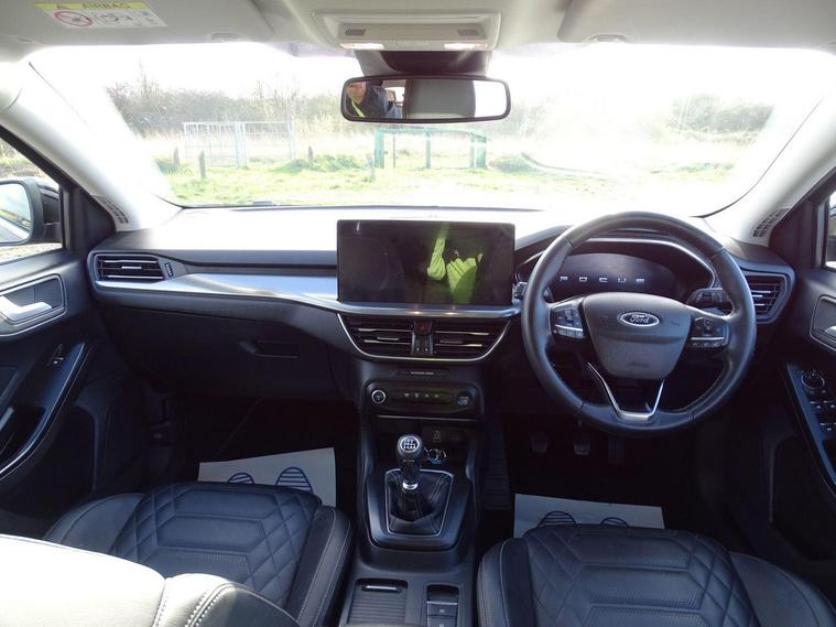 This 2022 Ford Focus T Titanium Vignale is a superb example, having had only one owner from new. This stylish hatchback boasts a 1.0 litre petrol engine and meets Euro 6 emissions standards. It comes equipped with a host of desirable features, including front and rear parking sensors with parking assistance, a winter pack featuring heated seats and a heated steering wheel, and convenient wireless phone charging. The vehicle also benefits from full fixed LED headlights with LED daytime running lights and automatic on-off functionality, ensuring excellent visibility in all conditions.The Ford Focus T Titanium Vignale offers an impressive fuel economy of 52 miles per gallon, demonstrating its efficiency compared to other vehicles in its class. Its low CO2 emissions further contribute to its economical running costs. For those who appreciate performance, it accelerates from 0 to 62 miles per hour in just 10.2 seconds, providing a responsive driving experience..