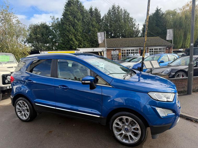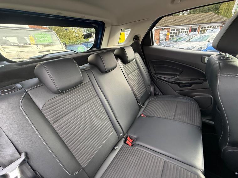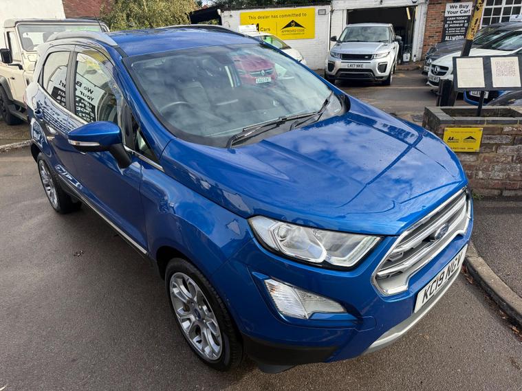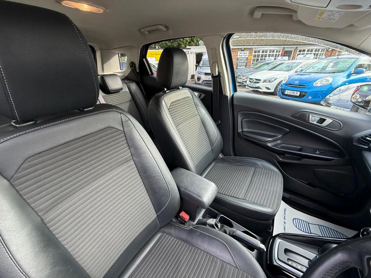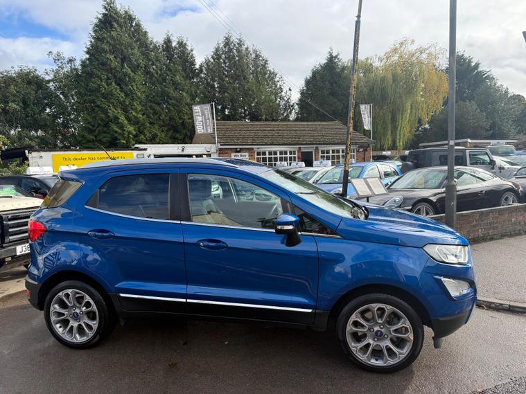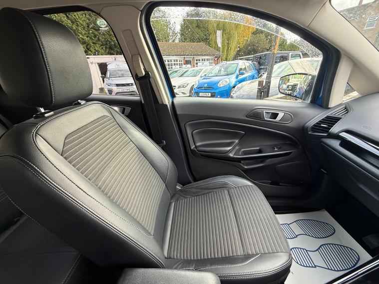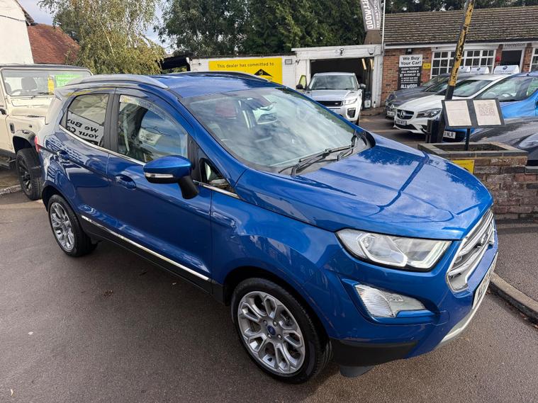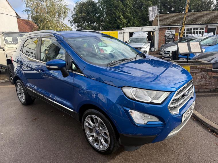 Allwood of Sandridge are pleased to be able to bring to market this lovely condition throughout and full service history with a wet belt replacement via Ford main dealer at 60, 000 miles. In stunning lightning blue metallic paintwork this Ford EcoSport 1.0T EcoBoost range topping Titanium edition has a lovely service record accompanying it. With full ford main dealer history for its first 4 service visits then followed by specialist independent with the last service at 55000 miles then a wet belt belt change at 60000 where the oil was changed again at the same time giving you a lovely full history of 6 services. For further peace of mind the current MOT runs right through till 20/08/2026. Fully HPI verified with confirmation of the cars miles and 2 owners from new. 2 keys are also equipped with the car. A tremendous level of spec comes with the Titanium edition and highlights include features such as a full wide screen entertainment system with full navigation and reverse camera system, half leather interior, folding electric mirrors, dual USB inputs, keyless go, ambient lighting, leather multi functional steering wheel and cruise control with the exterior of the vehicle trimmed with gloss grey alloy wheels and privacy glass to complete the overall look. Ready to drive away! We offer our clients full dealership facilities, part exchange valuations with up to the minute market pricing. FCA regulated with access to some of the best funding options in the market (subject to status and vehicle choice). Our Staff are fully SAF approved. A portfolio of extended warranty options are on offer to suit your needs. Looking for a great driving and condition Ecosport, with wonderful spec and great colour combination with full history and new MOT and service? Our dealerships are fully AA Approved via trading standards and all vehicles come with free AA breakdown cover. We operate via appointments for viewings and test drives in order to give you the best possible service simply contact the friendly team today on 01727432301 or what's app and text services on 01727432301.