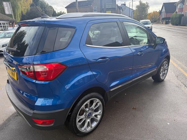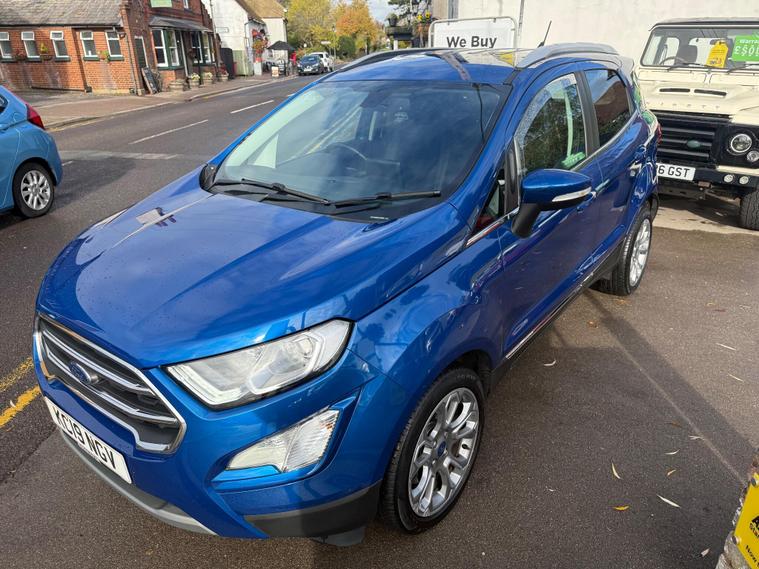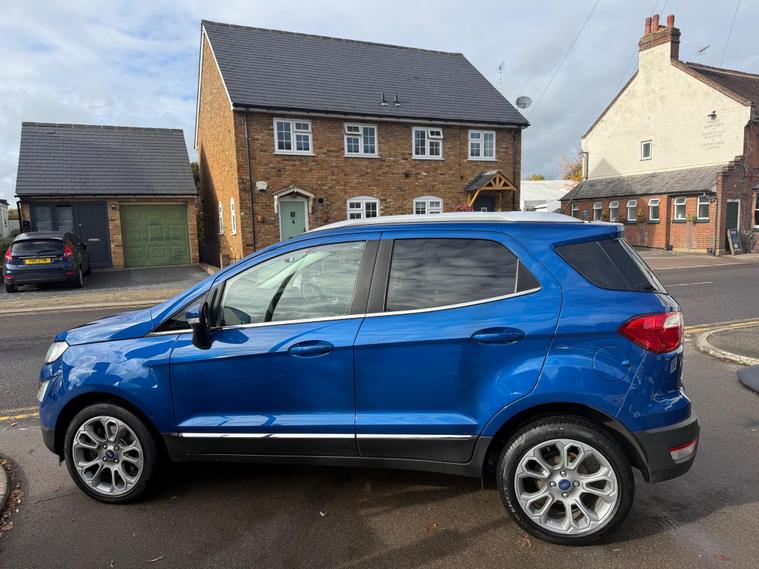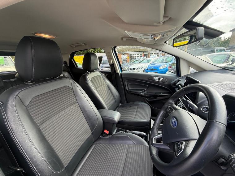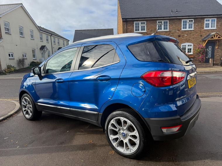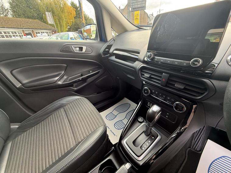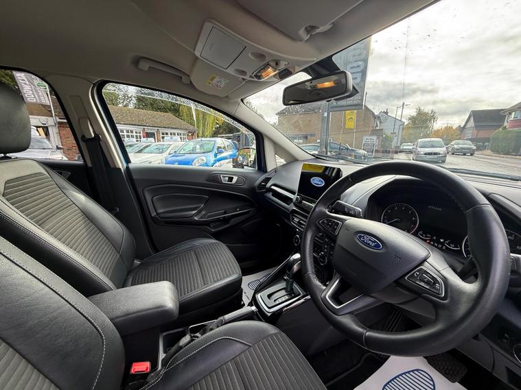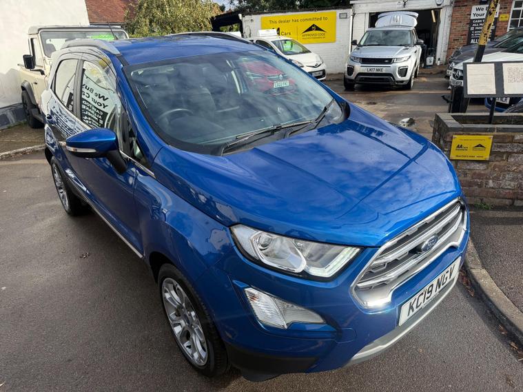 Allwood of Sandridge are pleased to be able to bring to market this lovely condition throughout and full service history with a wet belt replacement via Ford main dealer at 60, 000 miles. In stunning lightning blue metallic paintwork this Ford EcoSport 1.0T EcoBoost range topping Titanium edition has a lovely service record accompanying it. With full ford main dealer history for its first 4 service visits then followed by specialist independent with the last service at 55000 miles then a wet belt belt change at 60000 where the oil was changed again at the same time giving you a lovely full history of 6 services. For further peace of mind the current MOT runs right through till 20/08/2026. Fully HPI verified with confirmation of the cars miles and 2 owners from new. 2 keys are also equipped with the car. A tremendous level of spec comes with the Titanium edition and highlights include features such as a full wide screen entertainment system with full navigation and reverse camera system, half leather interior, folding electric mirrors, dual USB inputs, keyless go, ambient lighting, leather multi functional steering wheel and cruise control with the exterior of the vehicle trimmed with gloss grey alloy wheels and privacy glass to complete the overall look. Ready to drive away! We offer our clients full dealership facilities, part exchange valuations with up to the minute market pricing. FCA regulated with access to some of the best funding options in the market (subject to status and vehicle choice). Our Staff are fully SAF approved. A portfolio of extended warranty options are on offer to suit your needs. Looking for a great driving and condition Ecosport, with wonderful spec and great colour combination with full history and new MOT and service? Our dealerships are fully AA Approved via trading standards and all vehicles come with free AA breakdown cover. We operate via appointments for viewings and test drives in order to give you the best possible service simply contact the friendly team today on 01727432301 or what's app and text services on 01727432301.