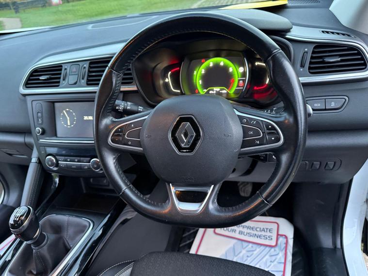 Renault Kadjar 1.2 TCe Dynamique S Nav SUV 5dr Petrol Manual Euro 6 (s/s) (130 ps)Petrol | Manual | White | 3 OwnersULEZ Compliant | HPI Clear | Warranted MileageFull Dealer History | Fresh Service | Fresh MOT | 6 Months WarrantyFree Breakdown Cover | Nationwide Delivery AvailableA stylish and practical SUV that blends comfort with performance — the Renault Kadjar offers a refined drive, modern technology, and excellent fuel economy.Key Features:Navigation HDDClimate ControlParking SensorsHalf Leather Trim19'' Alloy WheelsTyre Repair KitPrivacy GlassHighlights:Mechanically perfect – powerful engine & smooth gearboxVery well-maintained, clean inside and outJust buy & drive – truly superb throughoutLow insurance & running costsLooks & drives brilliantViewings by appointment onlyPart exchange welcome.