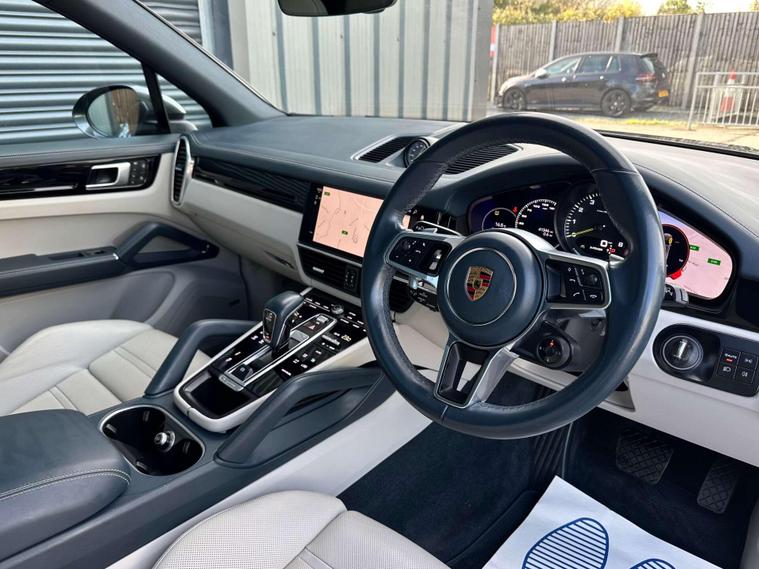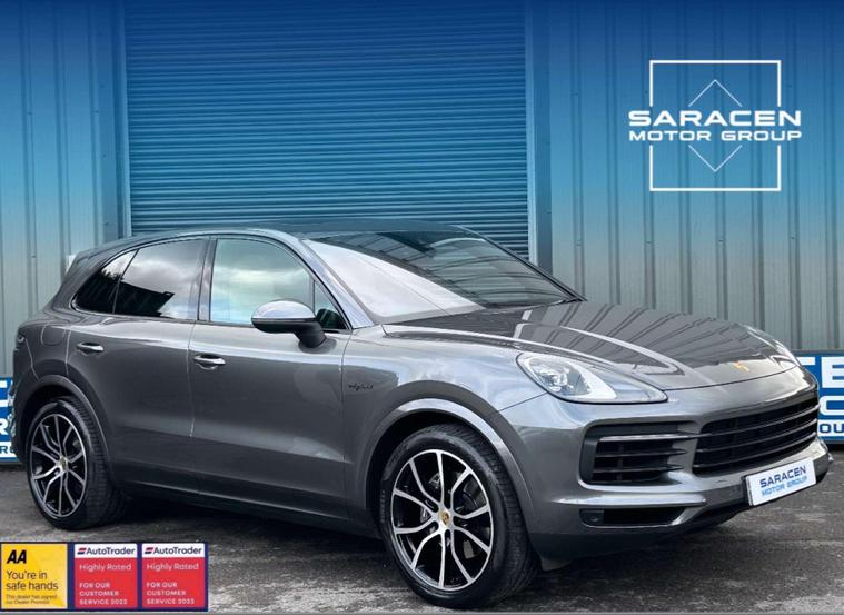Porsche 3.0 Cayenne V6 E-Hybrid Auto 4WD 5dr ULEZ FREE. Finished in quarzite grey metallic with a graphite blue/crayon two-tone full leather interior.21'' exclusive design wheels, privacy glass, adaptive air suspension, side window trims in high gloss black, sports exhaust system in black, PDLS, PASM, tinted LED taillights, automatically dimming interior/exterior mirrors, heated windscreen, ambient lighting, 18-way adaptive sports seats with memory package, heated front/rear seats, ventilated front seats, wireless smartphone charging, BOSE surround sound system, sport chrono package, Apple CarPlay, Android Auto, preparation for towbar system, satellite navigation, USB connectivity, cruise control, front/rear park assist, reversing camera, acid green brake calipers, electric heated door mirrors, automatic headlight activation, automatic climate control, powered tailgate, leather multifunction steering wheel and black high-gloss finish interior package. Here at Saracen Motor Group we have been awarded AA Platinum dealership recognition along with being nominated for best customer service by Autotrader for 2021, 2022, 2023, 2024 & 2025. We are a 5-star dealership with over 600, 5-star reviews across all internet platforms including Autotrader and have been regarded as one of the best dealerships to buy from in the UK.Our preparation inspected each vehicle to the highest level possible for it’s age and mileage. You can rest assure your next car has been cared for to the highest standard. Service history, V5 and the HPI certificate will all be present on viewing and collection. With our location based in Battlesbridge, Essex you can enjoy a haggle-free buying experience where you can drive away the same day if prior arranged, additional fees apply please see our website for details..