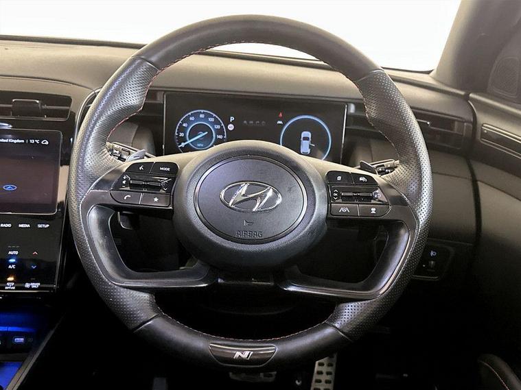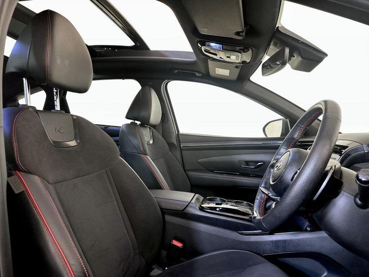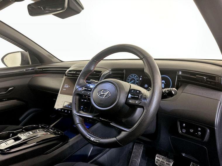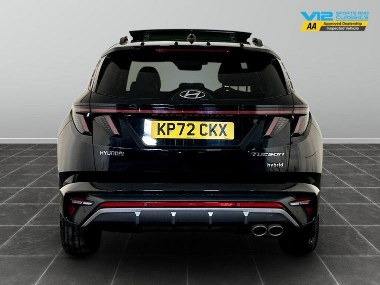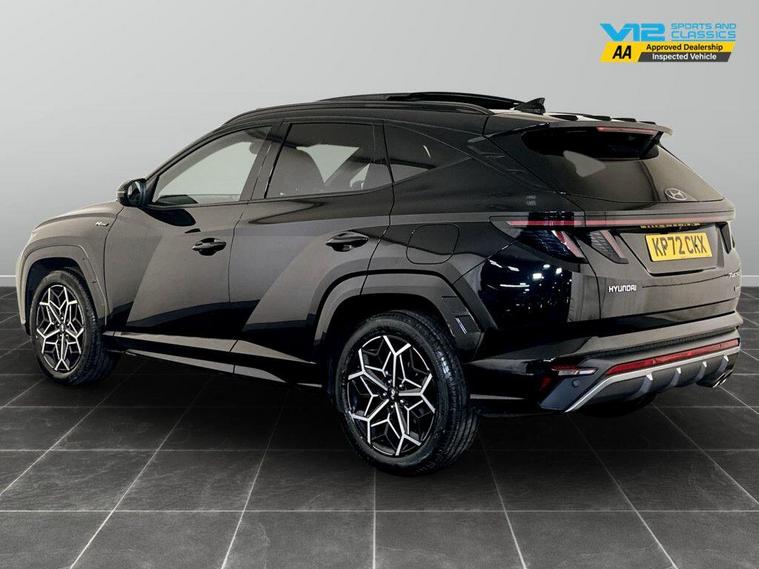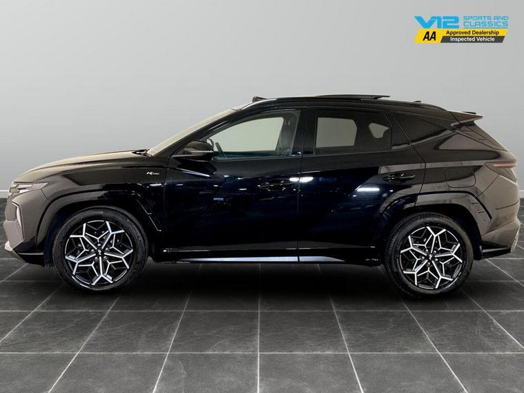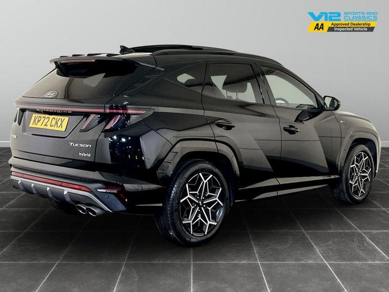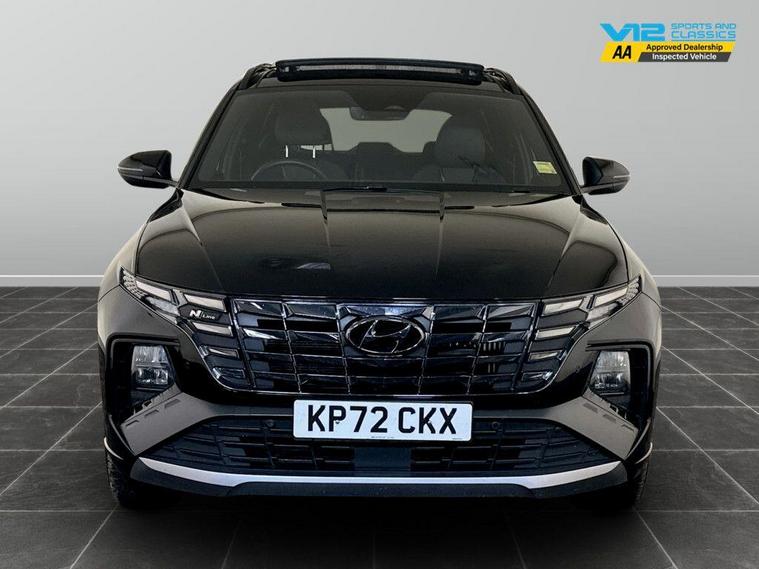 This 2022 Hyundai TUCSON h T-GDi N Line S is a superb example, having had only one owner since new. This stylish SUV boasts a 1.6 litre petrol hybrid engine, meeting Euro 6 emission standards. Inside, you'll find a host of convenient features including a wireless phone charging pad, Apple CarPlay for seamless phone integration, and a luxurious panoramic glass sunroof that offers electric tilt and slide functionality. The cabin also benefits from three zone climate control, ensuring comfort for all occupants, and automatic headlights with a dusk sensor for enhanced visibility. The TUCSON N Line S offers a compelling driving experience, accelerating from 0 to 62mph in a brisk 8.0 seconds. Its impressive acceleration indicates a more responsive performance compared to many similar vehicles. Furthermore, this model benefits from a low insurance group, making it an economical choice for many drivers. You'll also appreciate the generous boot space, providing ample room for luggage, shopping, or sports equipment, setting it apart from other SUVs in its class.For peace of mind this vehicle has only had 1 registered owner and has completed a multi point AA dealer's website finance is also available.We are open 7 days a week and have more than 1500 cars to choose from.All our Euro 4 Petrol and Euro 6 Diesel vehicles meet the ULEZ standard.Vehicle specification can be found below. From time to time vehicles have manufacturer recalls notified. Please read our recall policy on our website for further information..