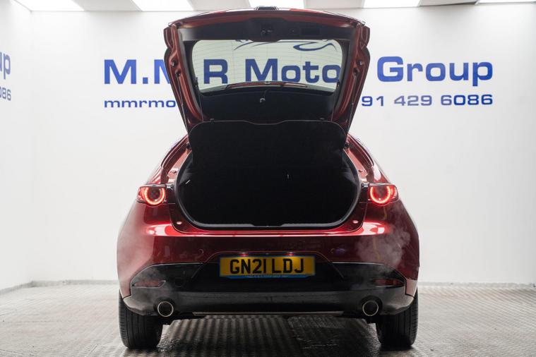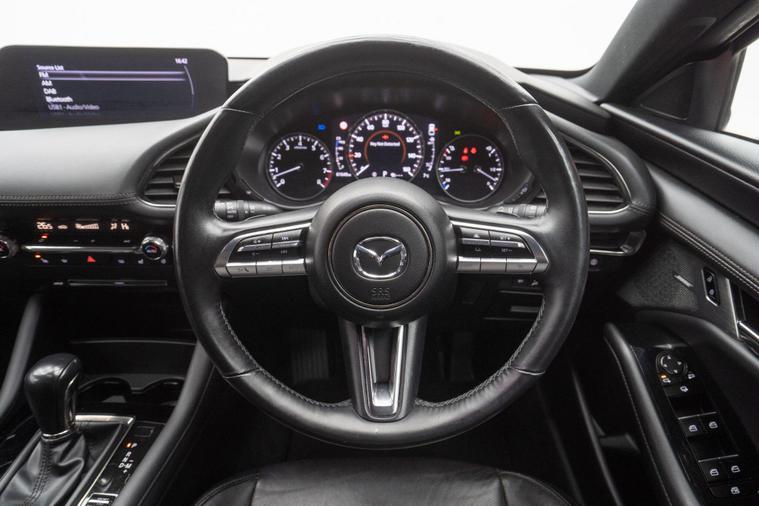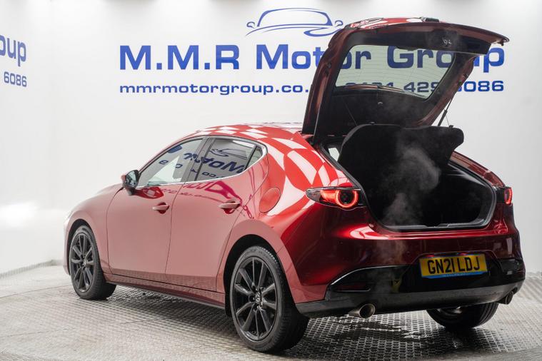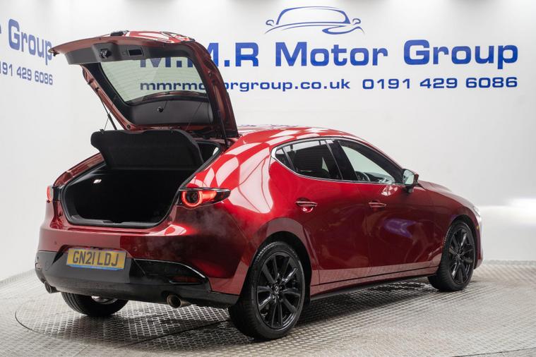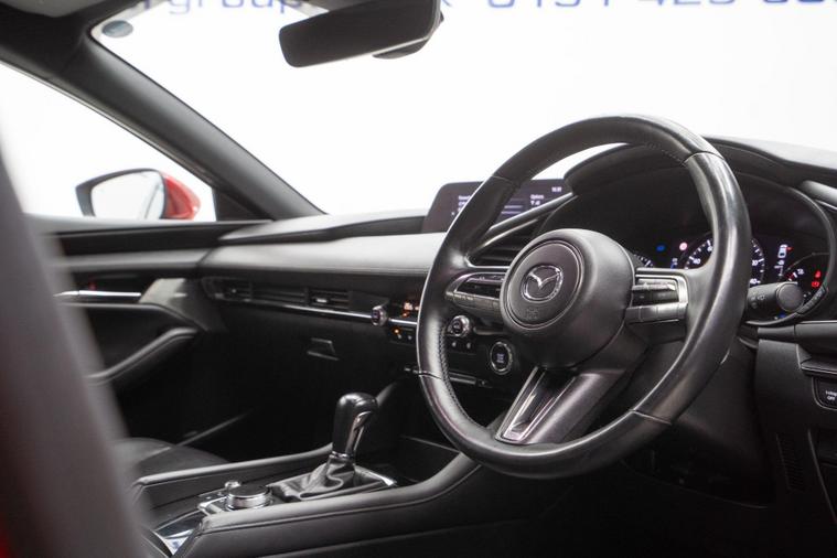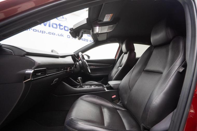 61, 649 miles, This 2021 Mazda3 e-SKYACTIV-X GT Sport boasts a clear vehicle history, offering you peace of mind. This stylish hatchback features a responsive 2.0L petrol engine, meeting Euro 6 emission standards. Inside, you'll find a premium experience with a heated steering wheel, Mazda Radar Cruise Control for effortless journeys, and dual-zone climate control air conditioning to keep everyone comfortable. Entertainment is provided by an AM-FM-DAB radio with an impressive 12 speaker Bose Surround Sound System. The driver's seat offers extensive power adjustments, including slide, recline, height, and lumbar support, complemented by a head up display and mirror memory for ultimate convenience.The Mazda3 GT Sport is designed to impress, accelerating from 0-62mph in a brisk 8.5 seconds, demonstrating its dynamic performance. This acceleration figure highlights how this Mazda3 offers a more engaging driving experience compared to many similar vehicles. Furthermore, you'll appreciate the generous boot space, making it practical for everyday use and longer trips alike..